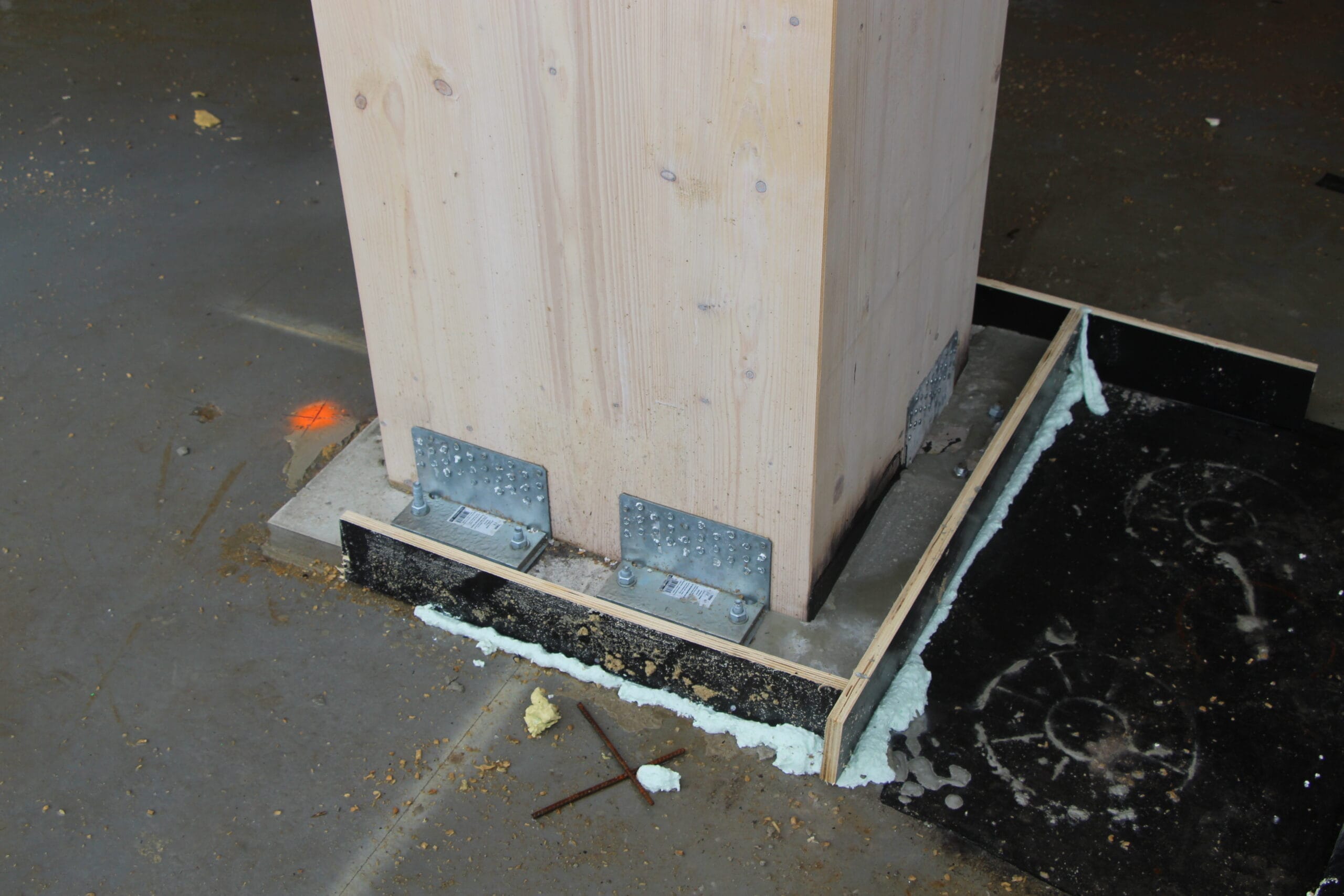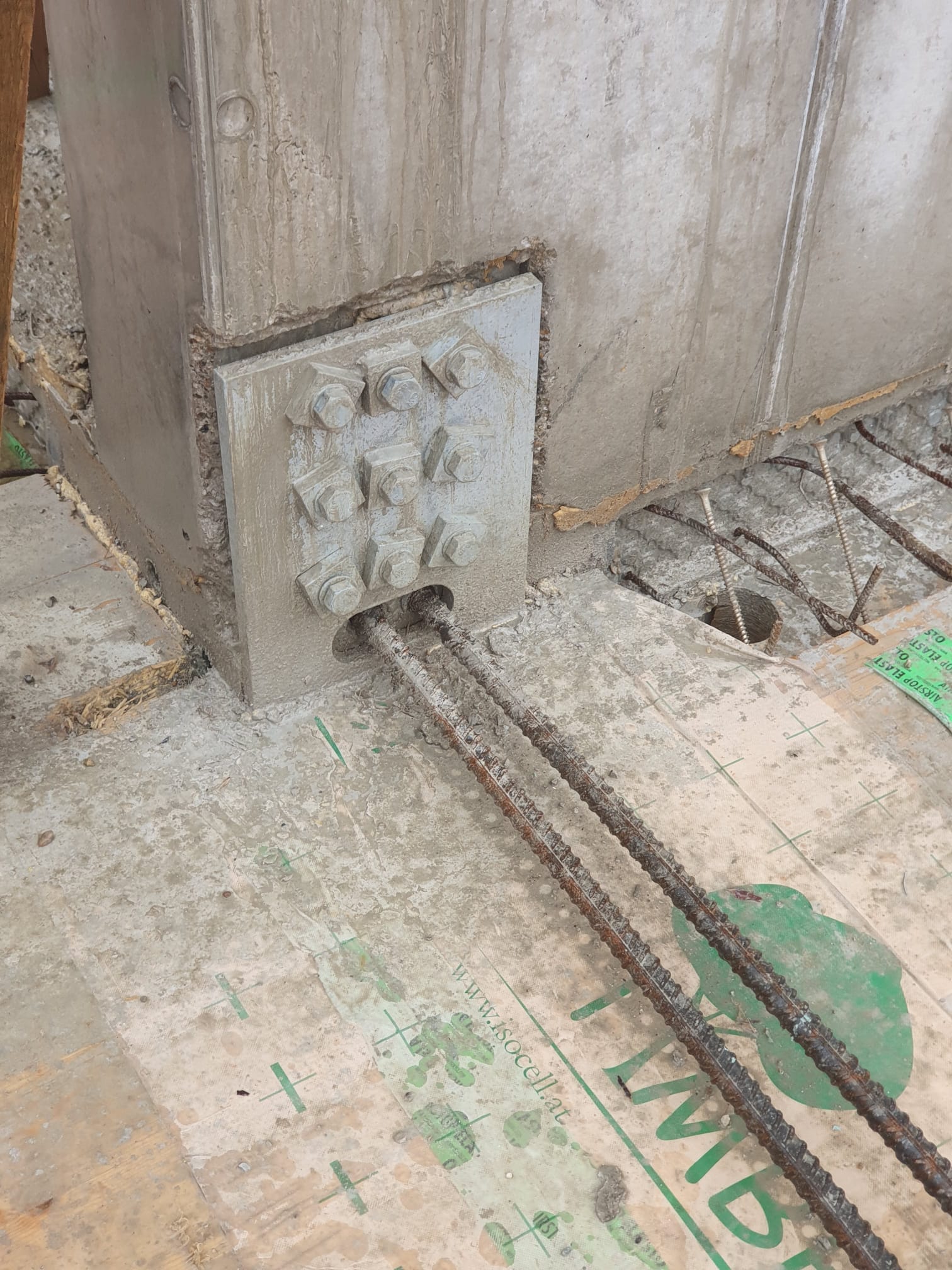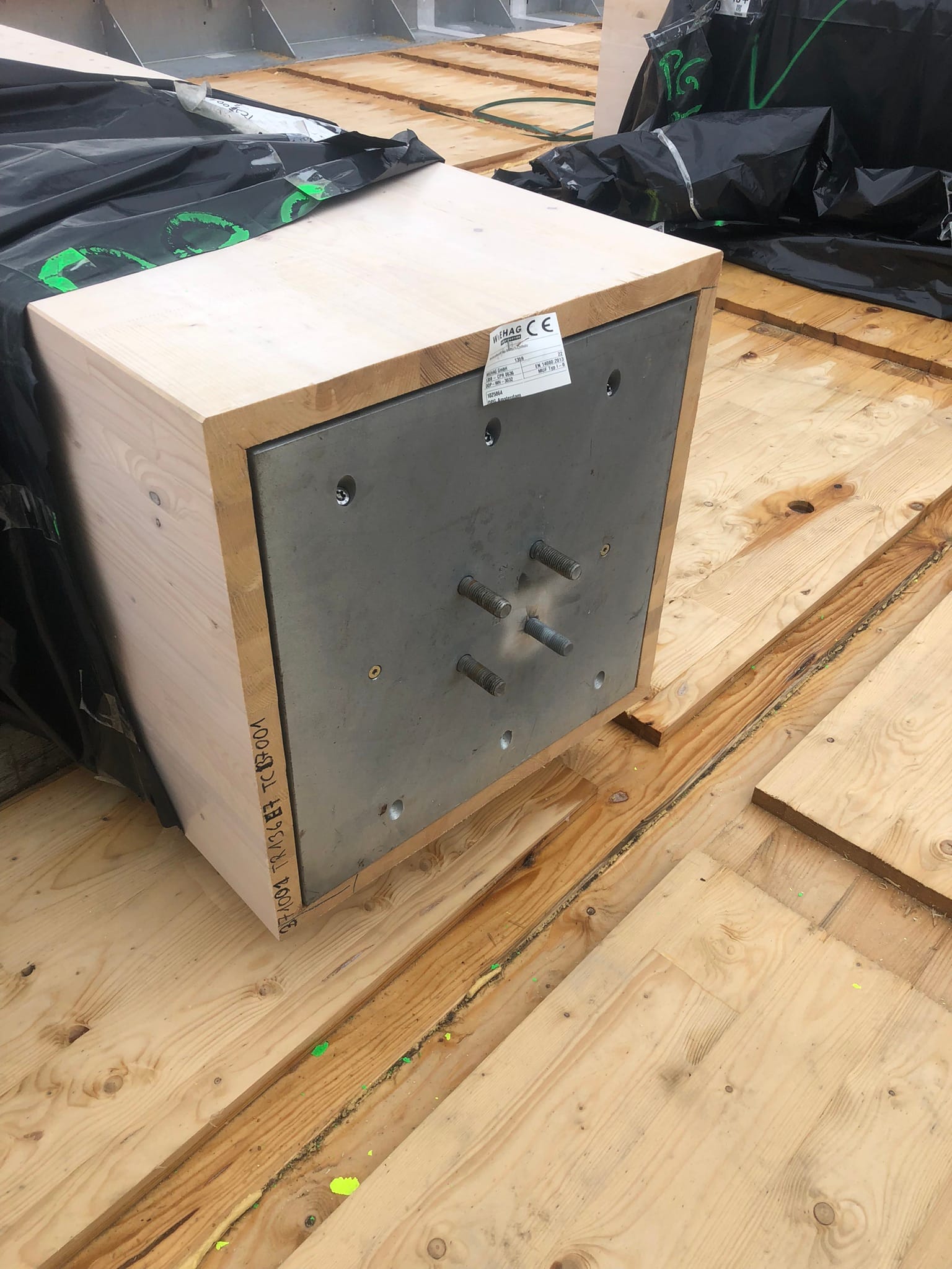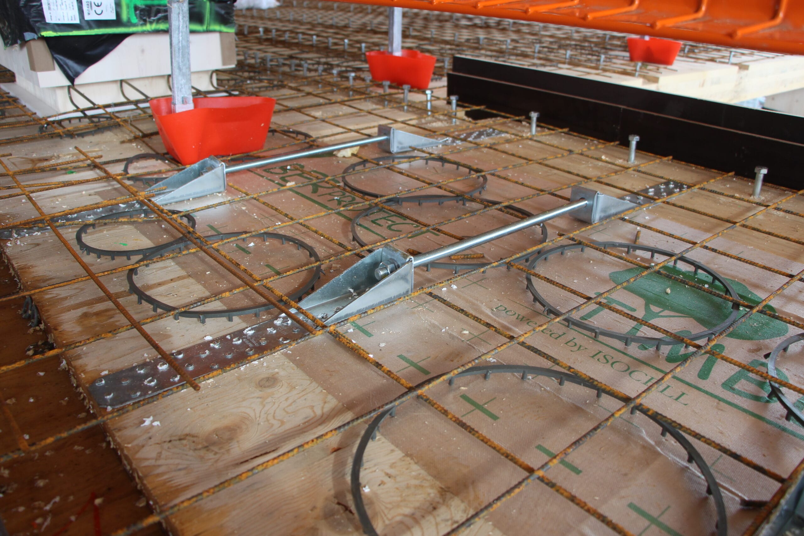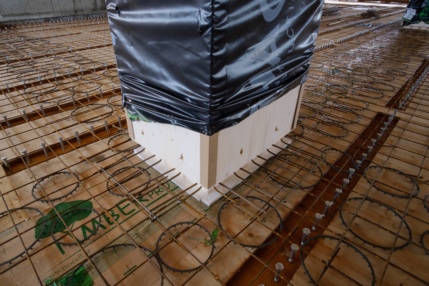 The majority of the columns and beams of the superstructure are made of glued laminated timber. The floors are made of a state-of-the-art technology called timber-concrete composite structures, consisting of a concrete compression layer on top of CLT panels.