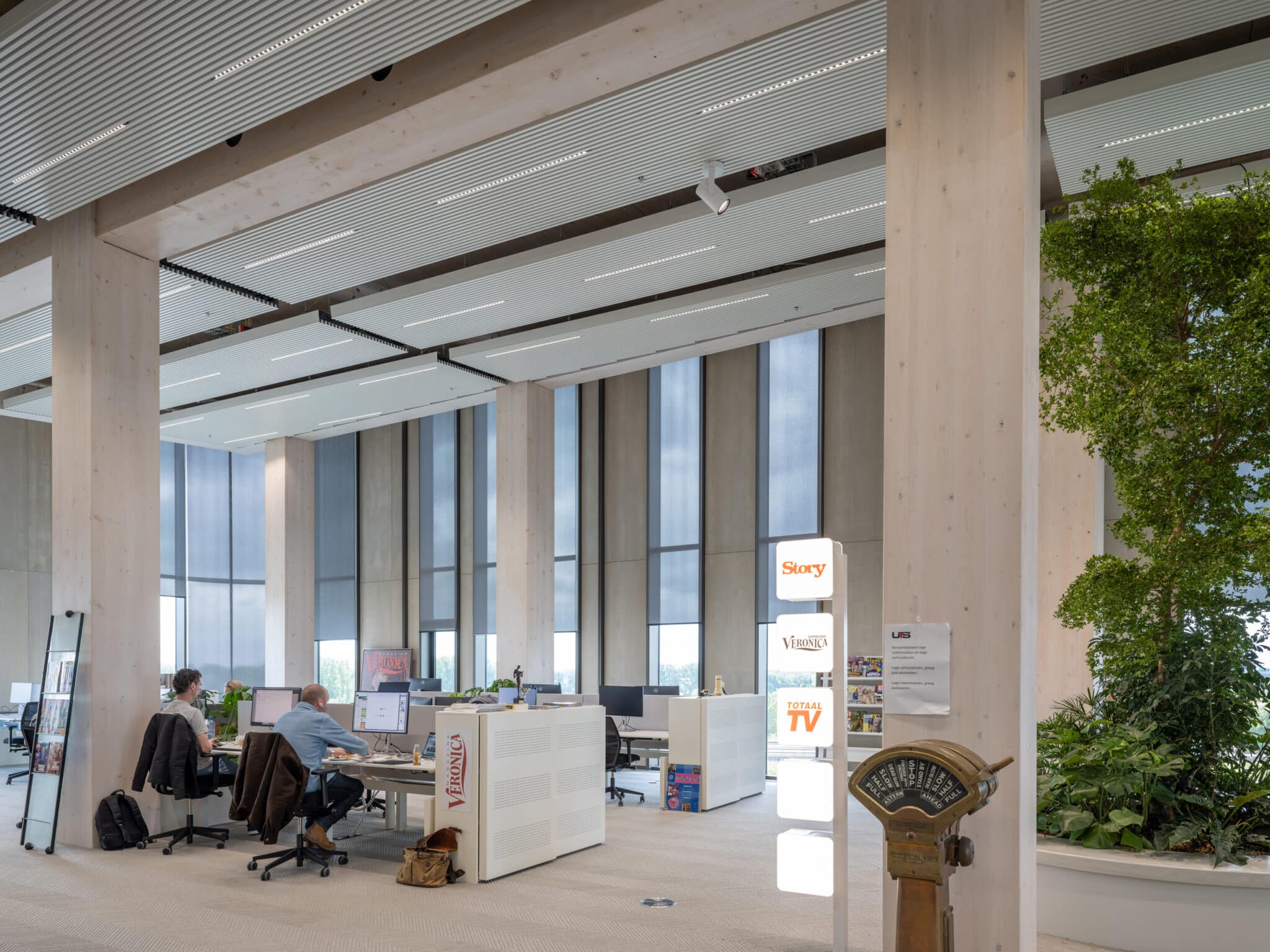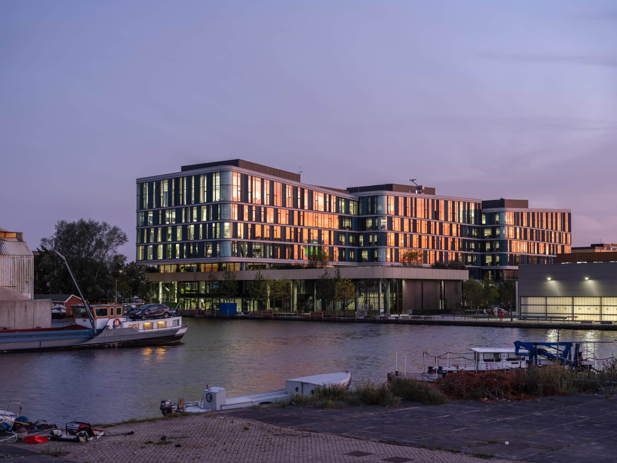The new office of DPG Media in Amsterdam is the largest timber hybrid office in Europe. Besides office spaces, newsrooms, and recording studios, the building also features test labs, meeting rooms, sports facilities, restaurants and an event location at the waterfront. Open spaces, voids, and outdoor areas enhance the spatial perception and encourage interaction between users. Greenery in, on and around the building offers a healthy and inspiring work environment and will add to a sense of connection with nature.