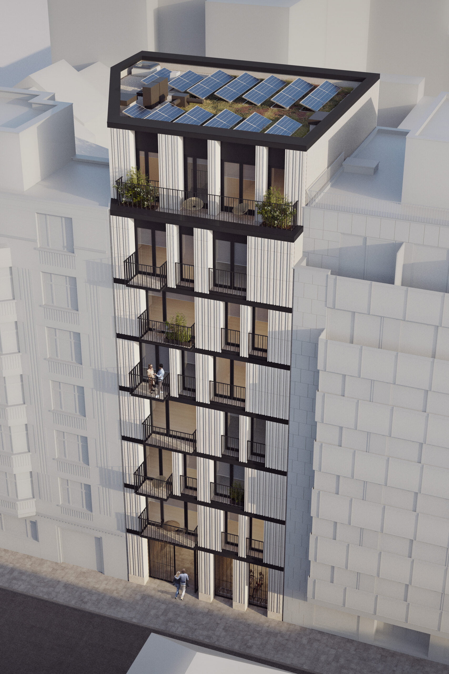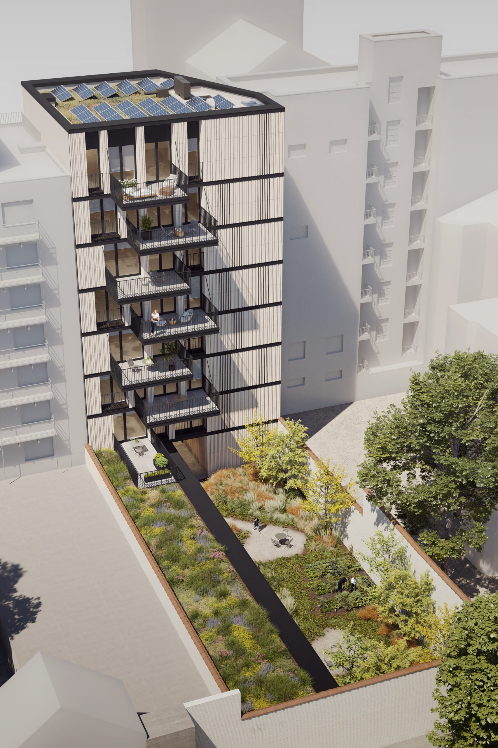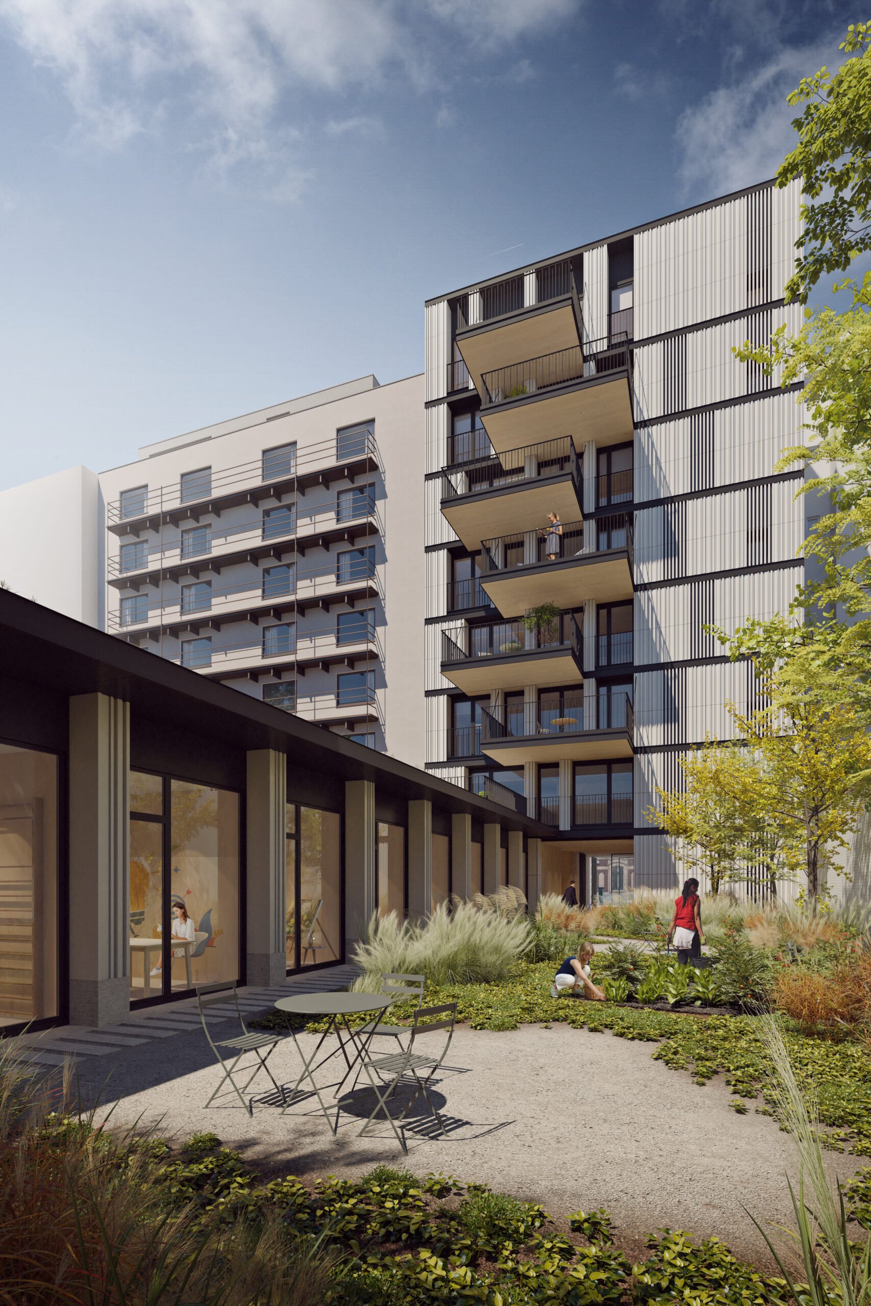 Blanche Housing project involves the creation of thirteen housing units, referred to as ‘oasis’ premises that are situated within the block and connected to a shared garden. These premises will be reserved for the future inhabitants of the project. Additionally, there will be a large, covered space designated for soft mobility. The project has ambitious goals in various aspects related to the climate transition.