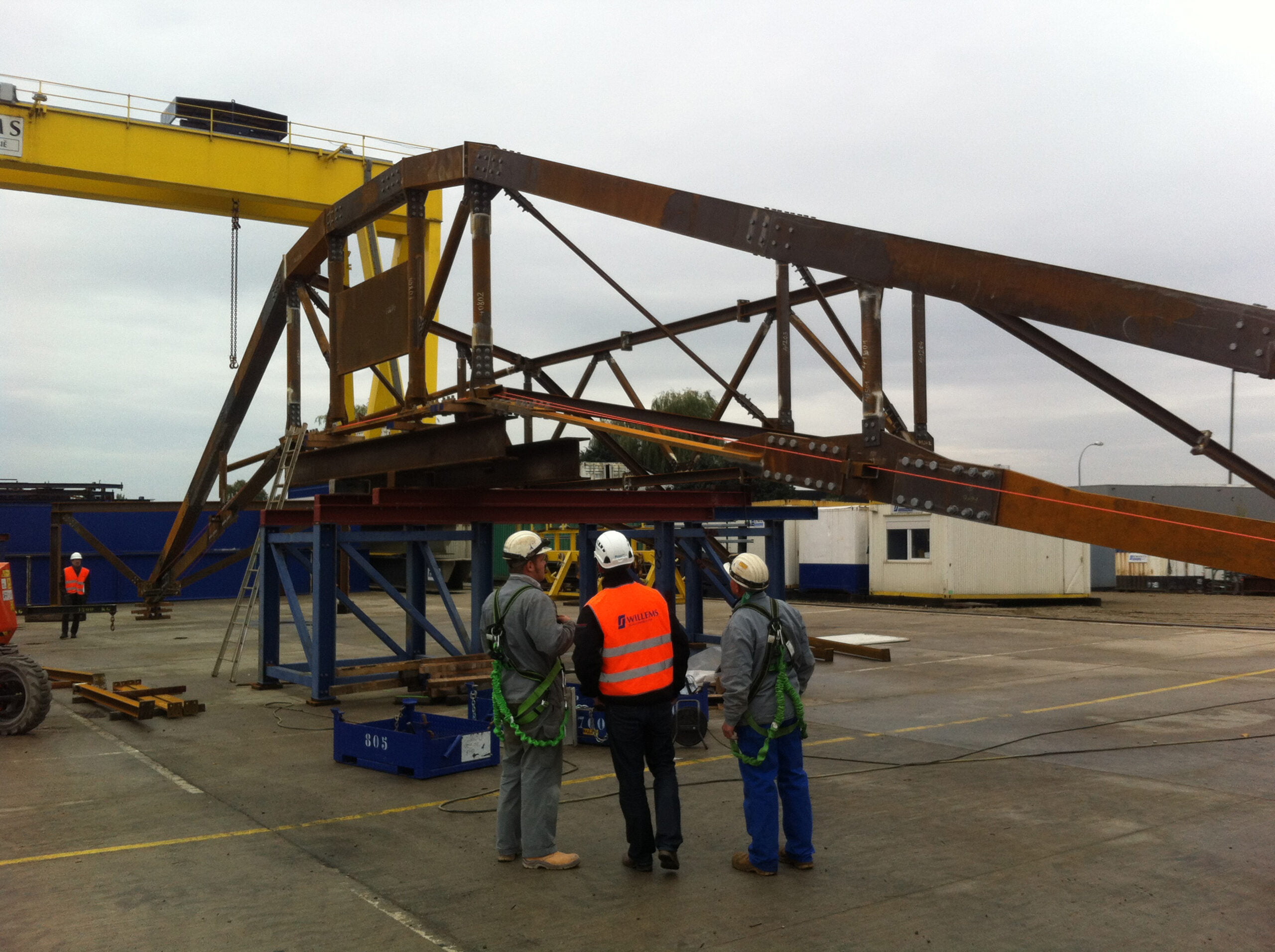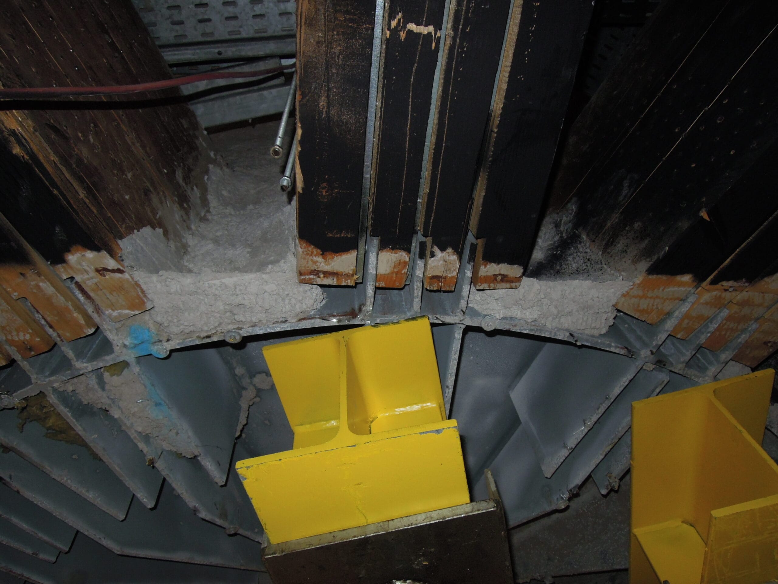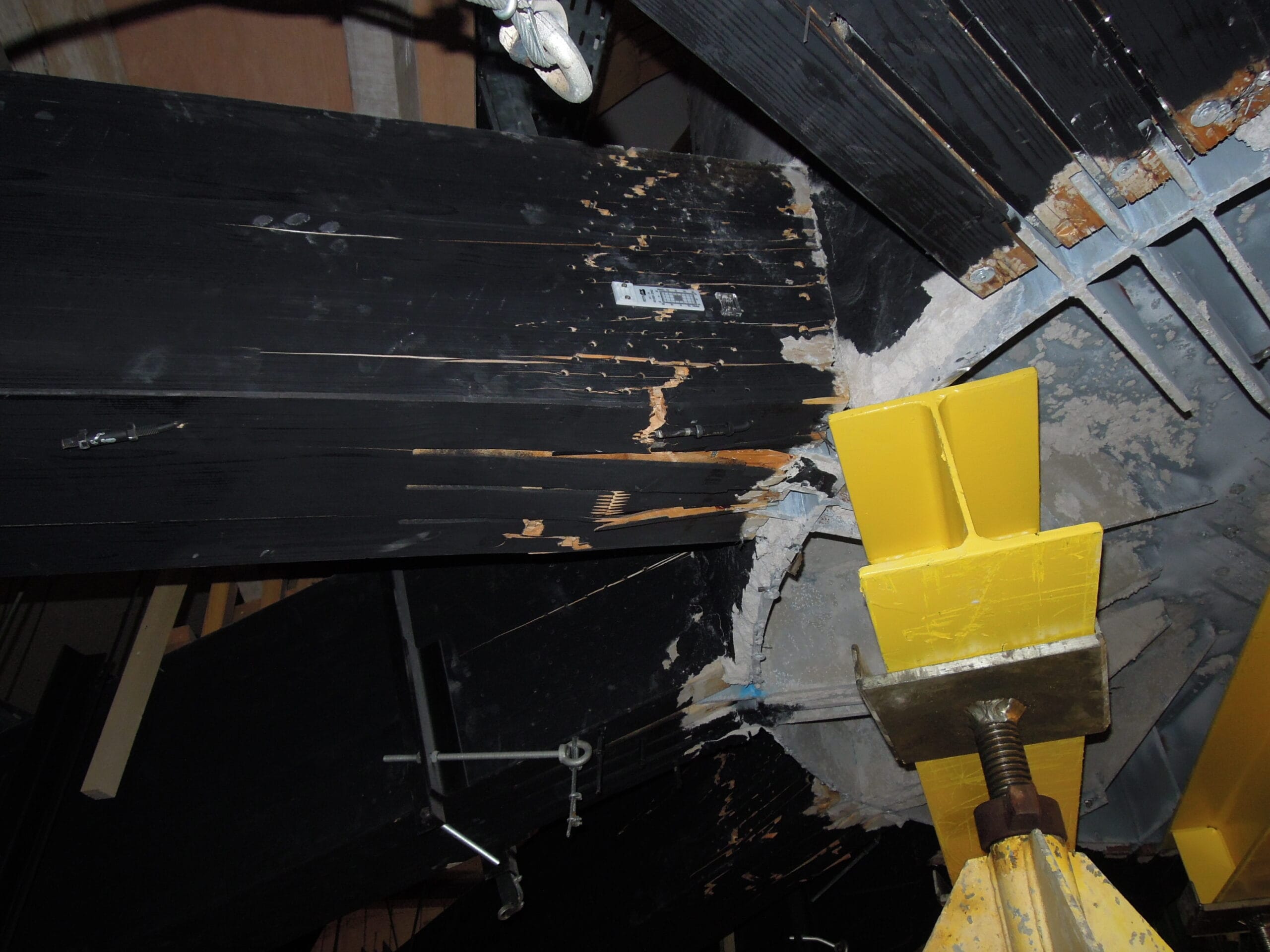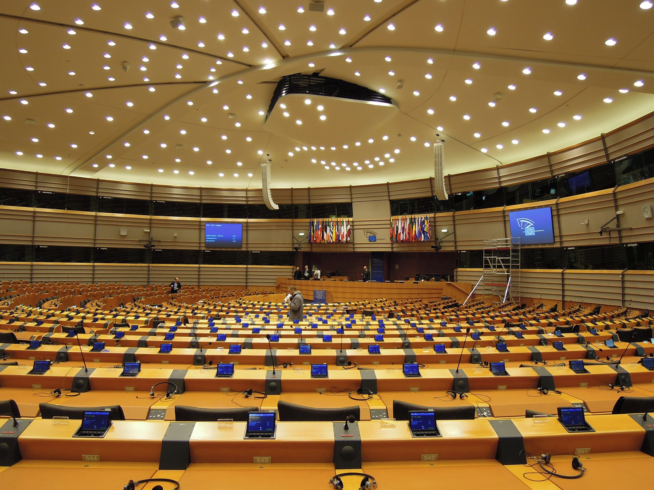 The roof structure of the Hemicycle consists of 22 glulam lattice girders arranged radially around a metal core. During an inspection of the ceilings, significant damages were discovered at certain joints. A complete analysis of the existing structure and a check based on current codes revealed a critical sensitivity of the structure to displacement of the supports due to its hyperstaticity. The new distribution of forces within the structure led to stresses being exceeded at certain joints, to the point of failure. Various repair and reinforcement options were studied, leading to the complete doubling of the structure with a steel frame. The glulam beams were completely unloaded using a complex jacking system.