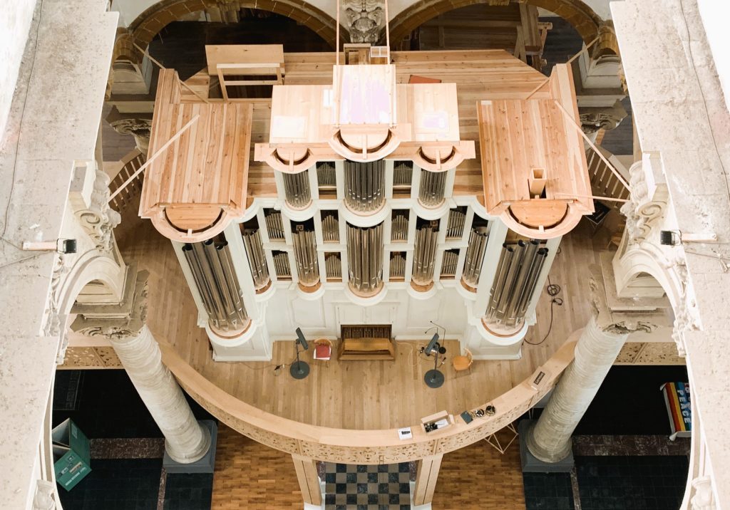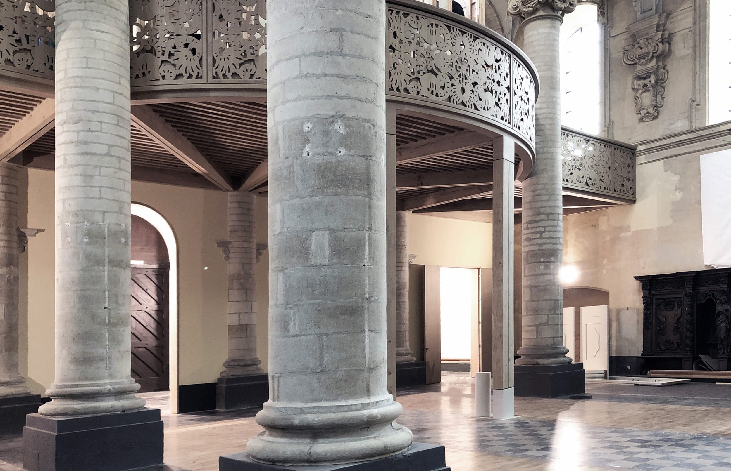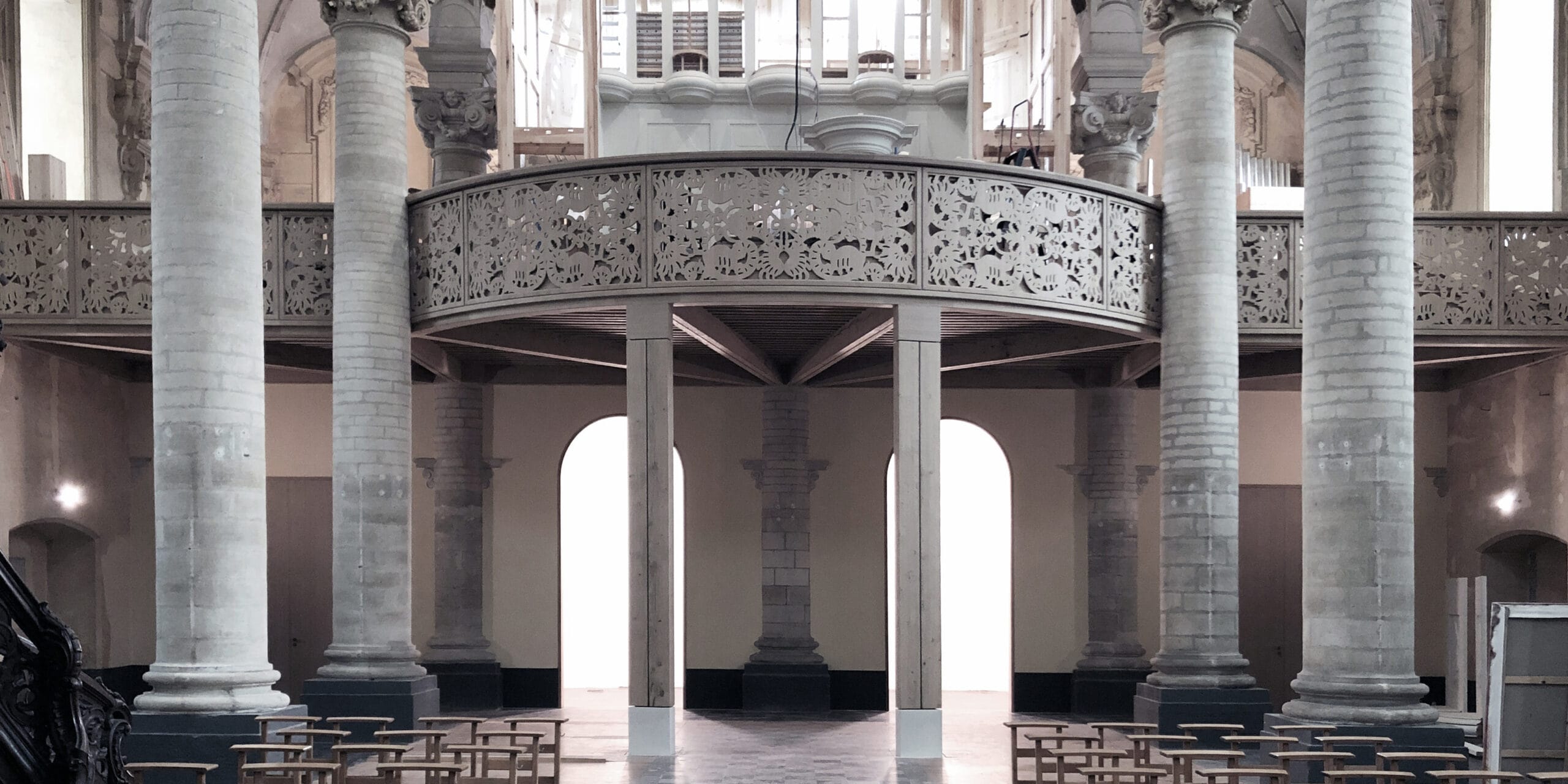 Construction of a structure to support the replica of a Contius baroque organ in the church of Saint Michael in Leuven.
