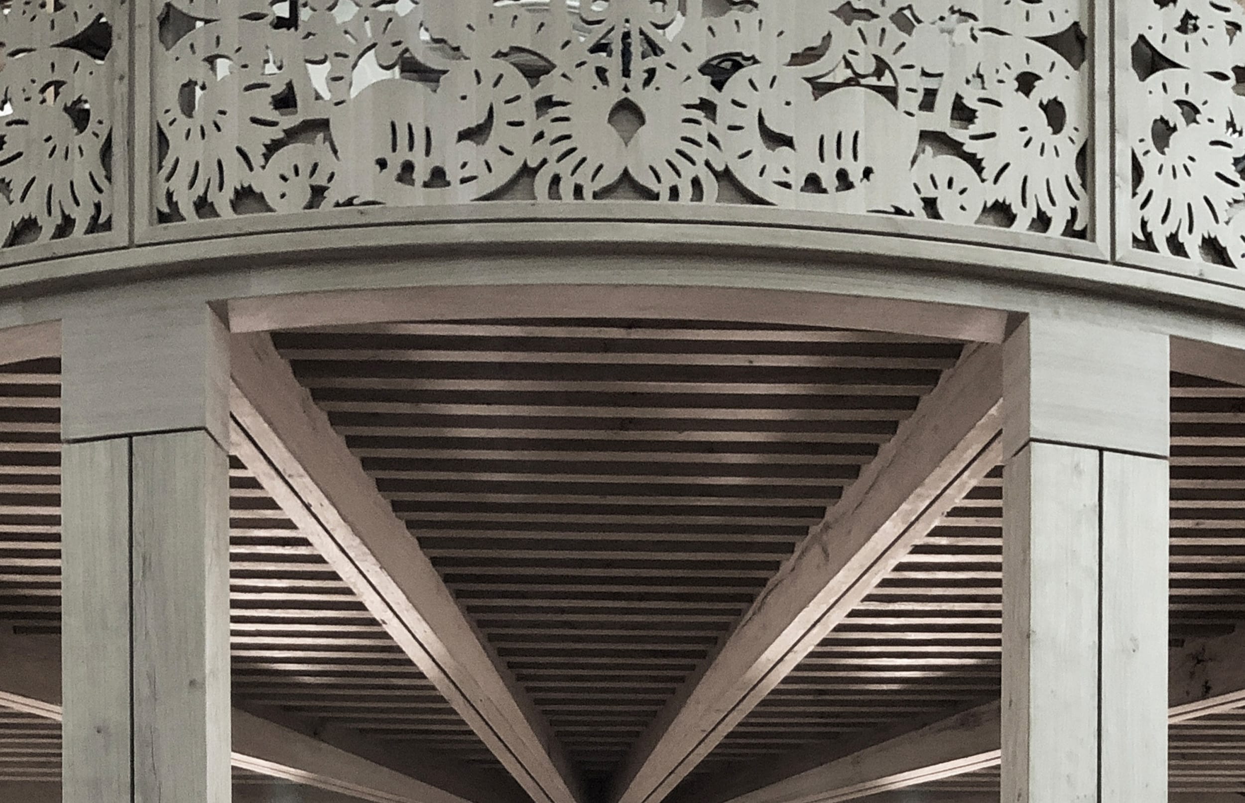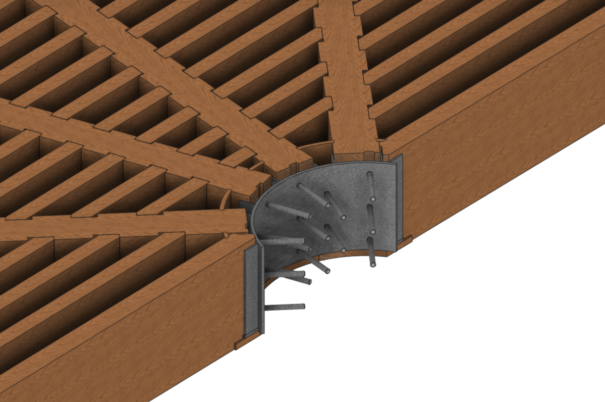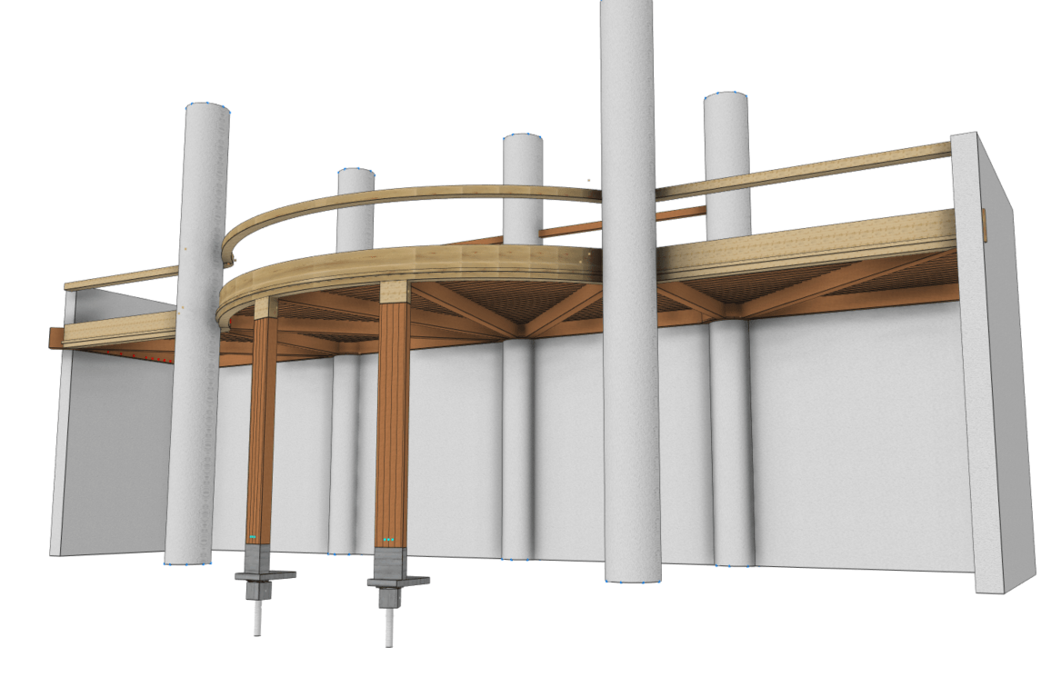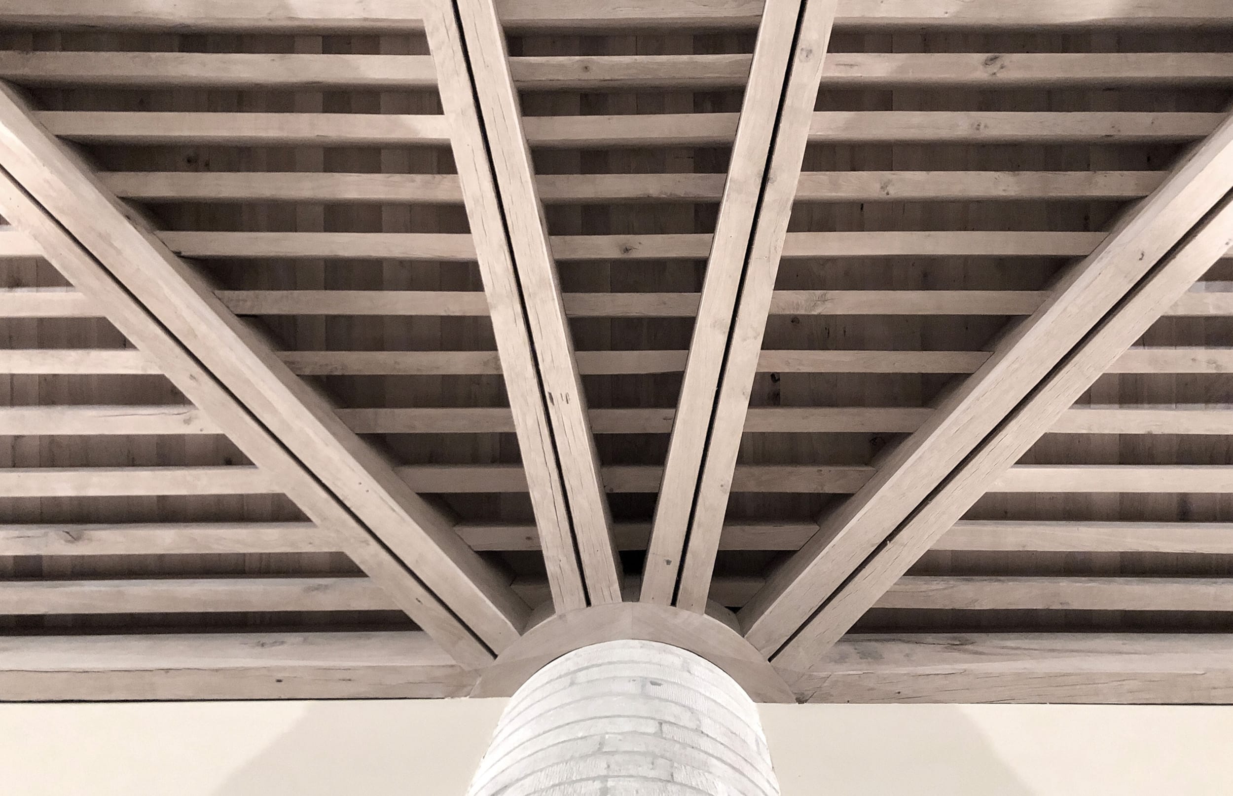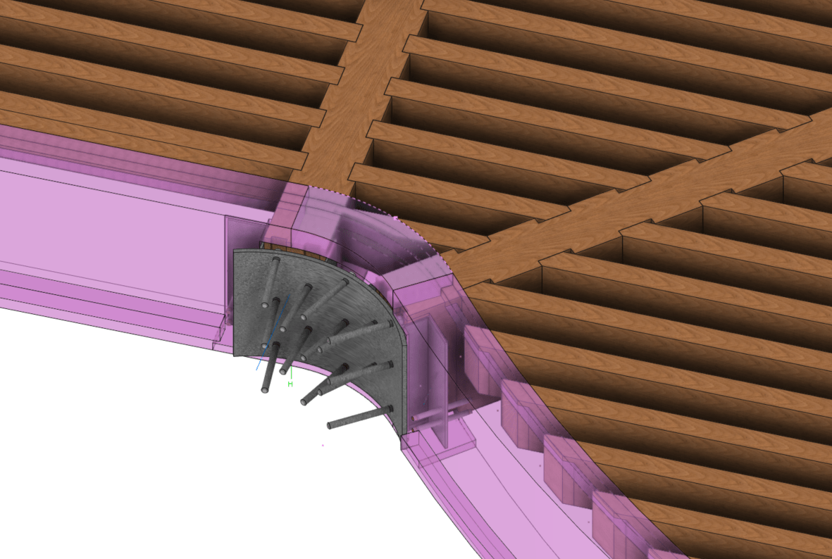 The project is built entirely from hardwood, oak. We therefore had to find large sections of hardwood and take into account the whole question of the relative humidity of the oak at the time of installation and its evolution over time.