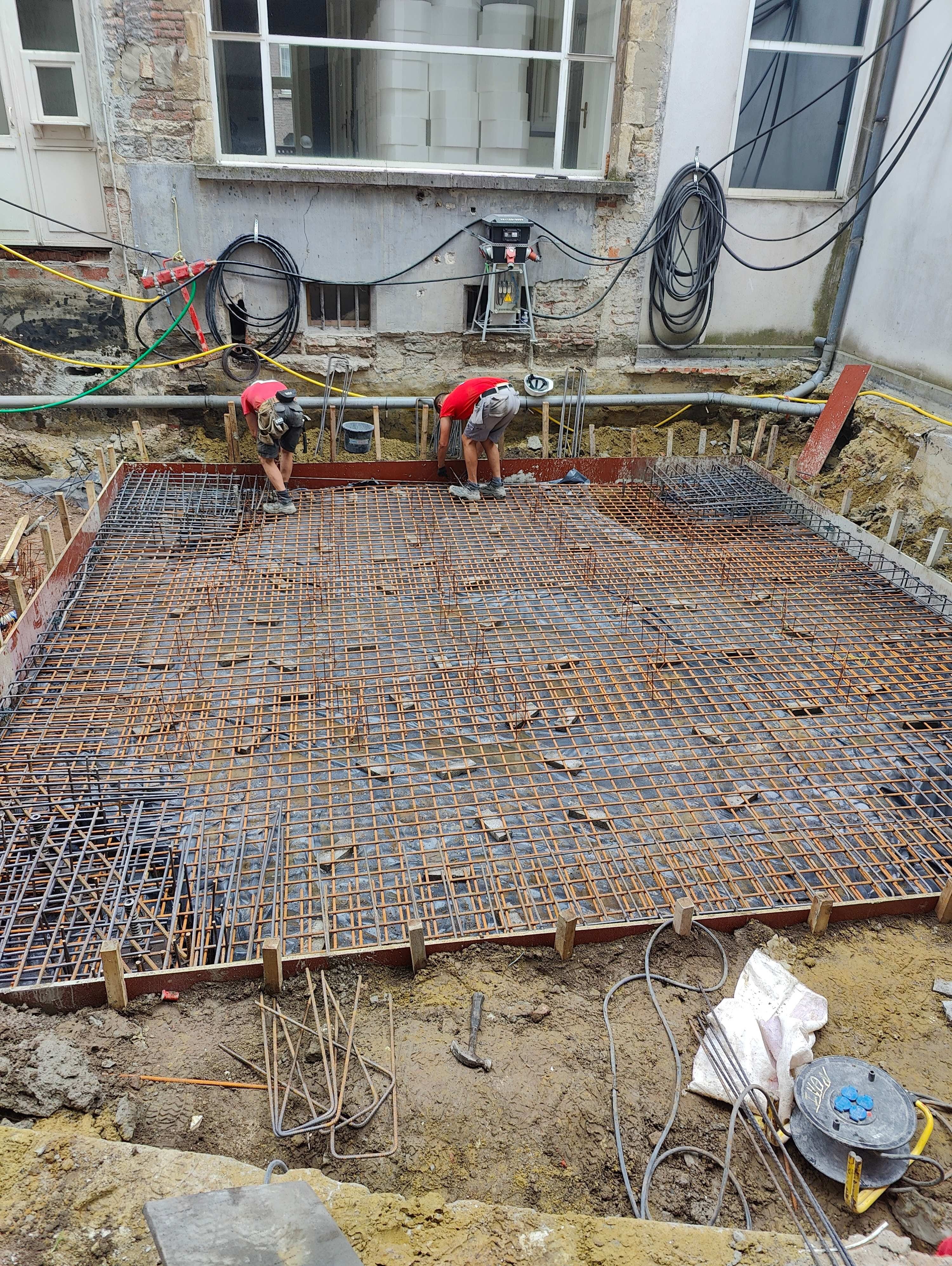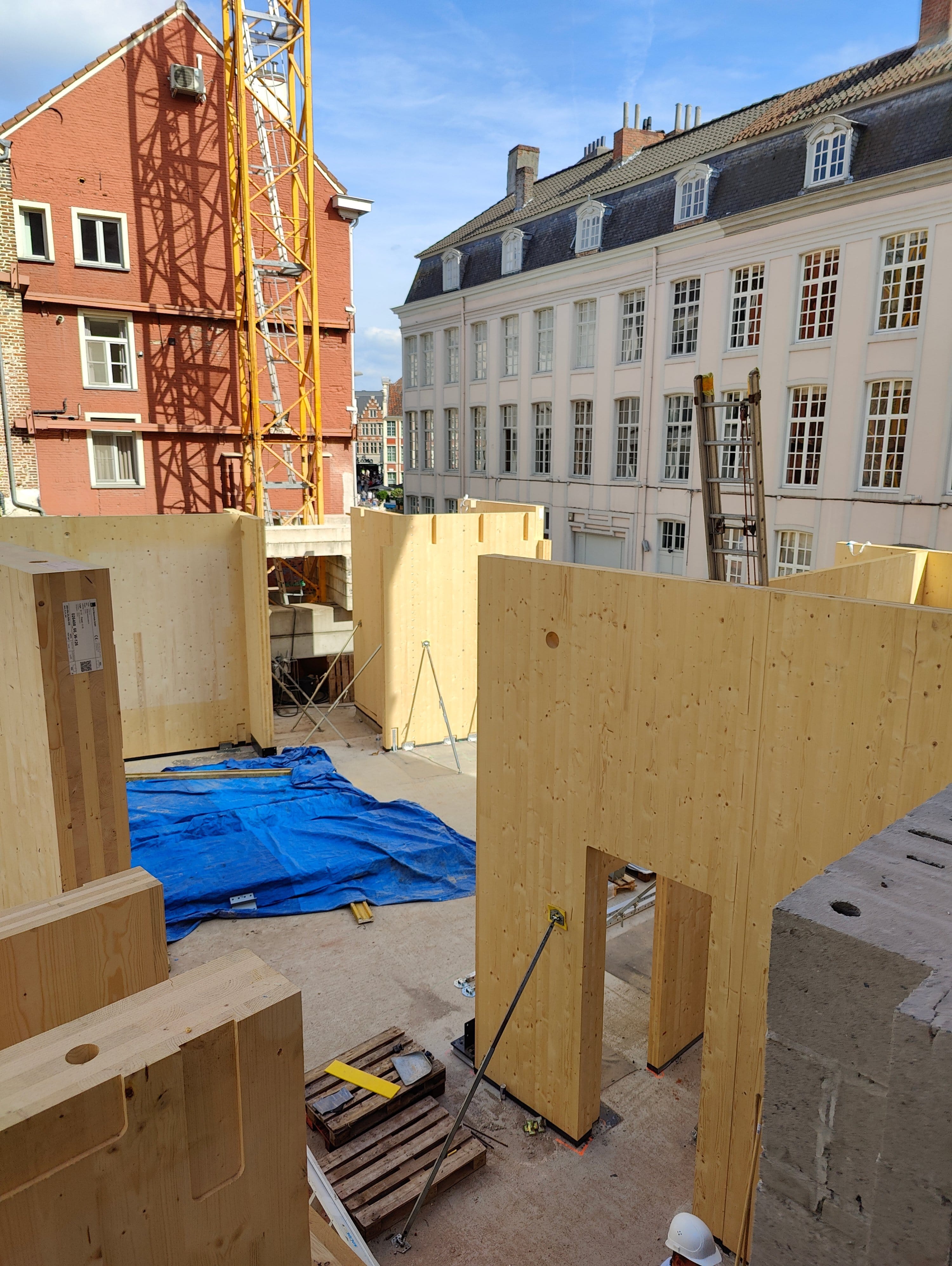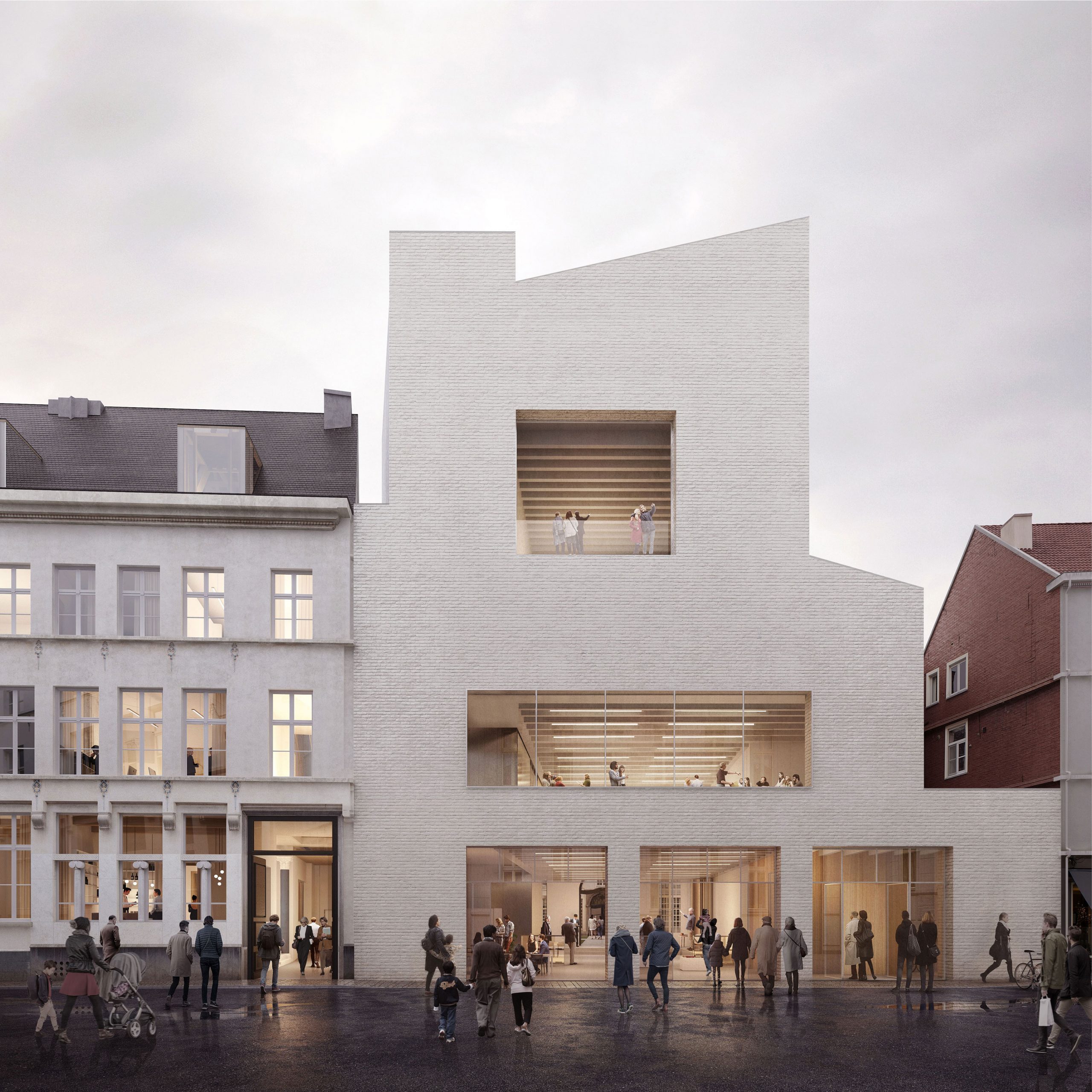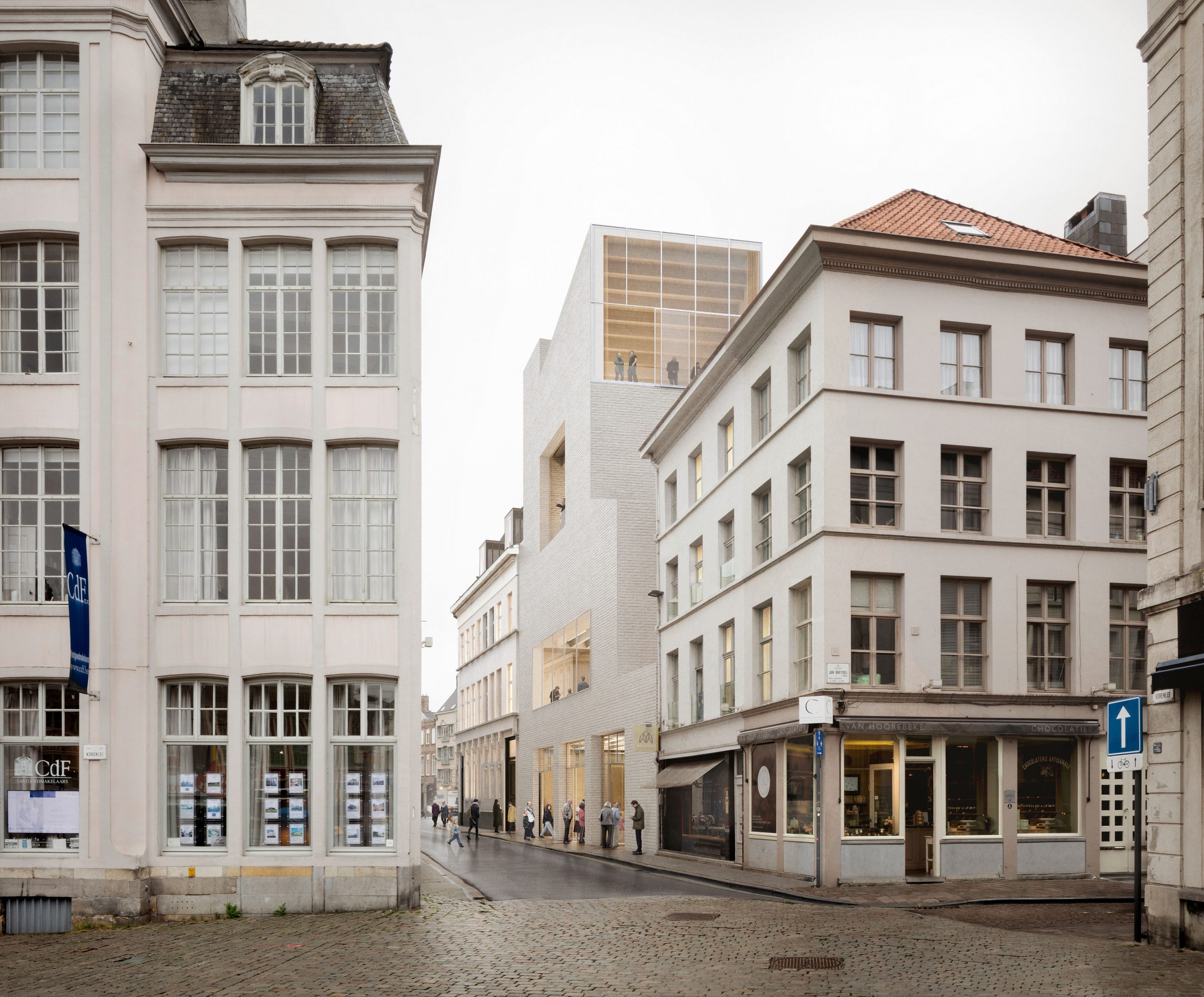 The Design Museum Ghent is extended by a new wing called DING (Design In Ghent). The new building will link the existing buildings of the museum and create additional exhibition space, while providing space for a shop and catering establishments. The structure of the new building is logical and coherent. There are large spans withstanding hight loads to accommodate several functions. The ribbed timber floors not only reduce material consumption but form also a visually interesting feature. By showing the structural elements as finishes, we simplify and accelerate the construction process significantly. The simplicity of the structure ensures that the visitor’s attention remains drawn to the exhibition. At the same time, this simplicity makes it possible to treat details with great care. Hence, the structure of the building functions simultaneously as finishing element.