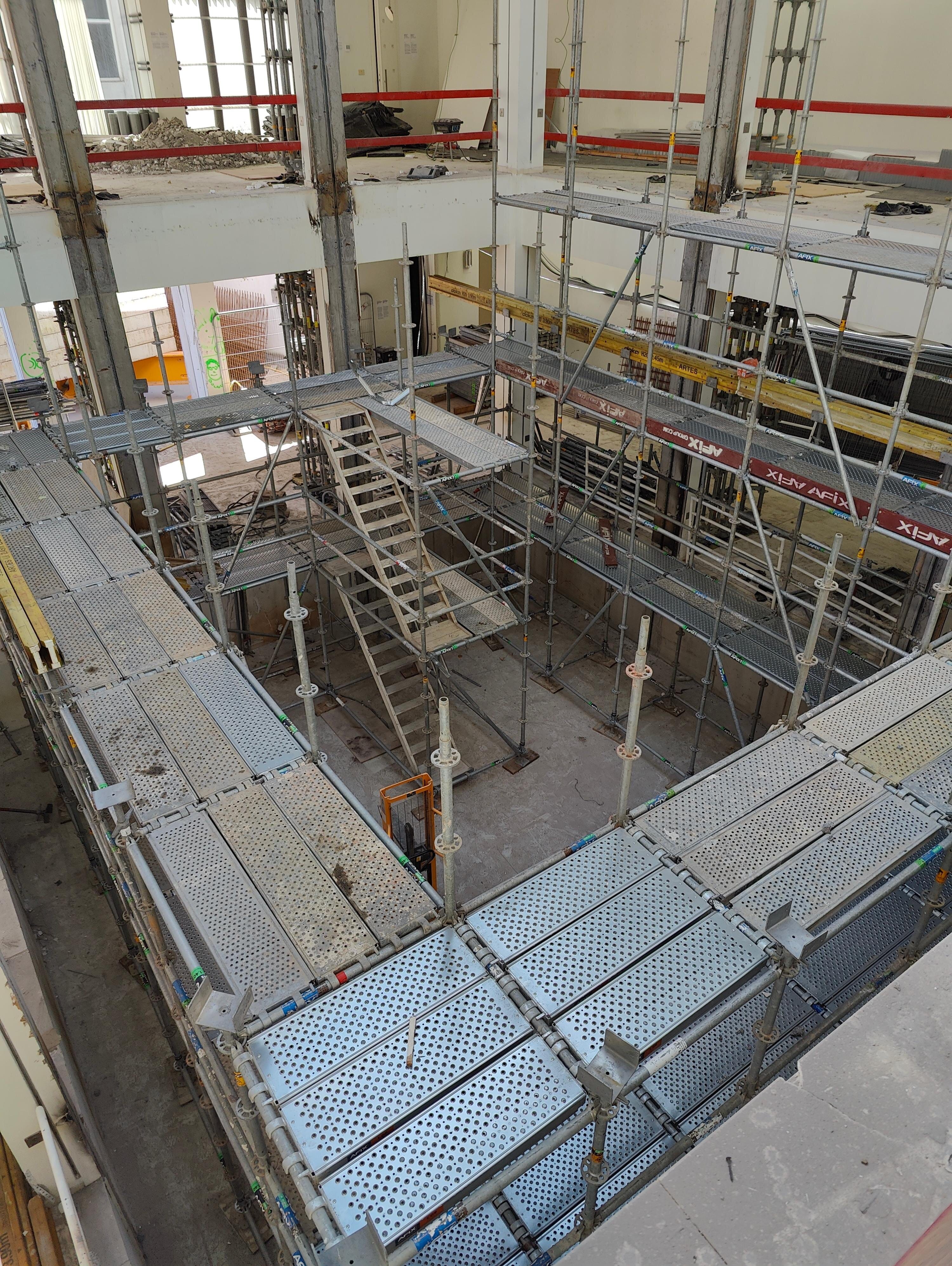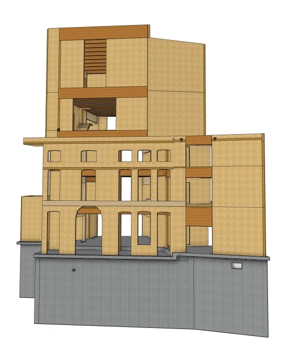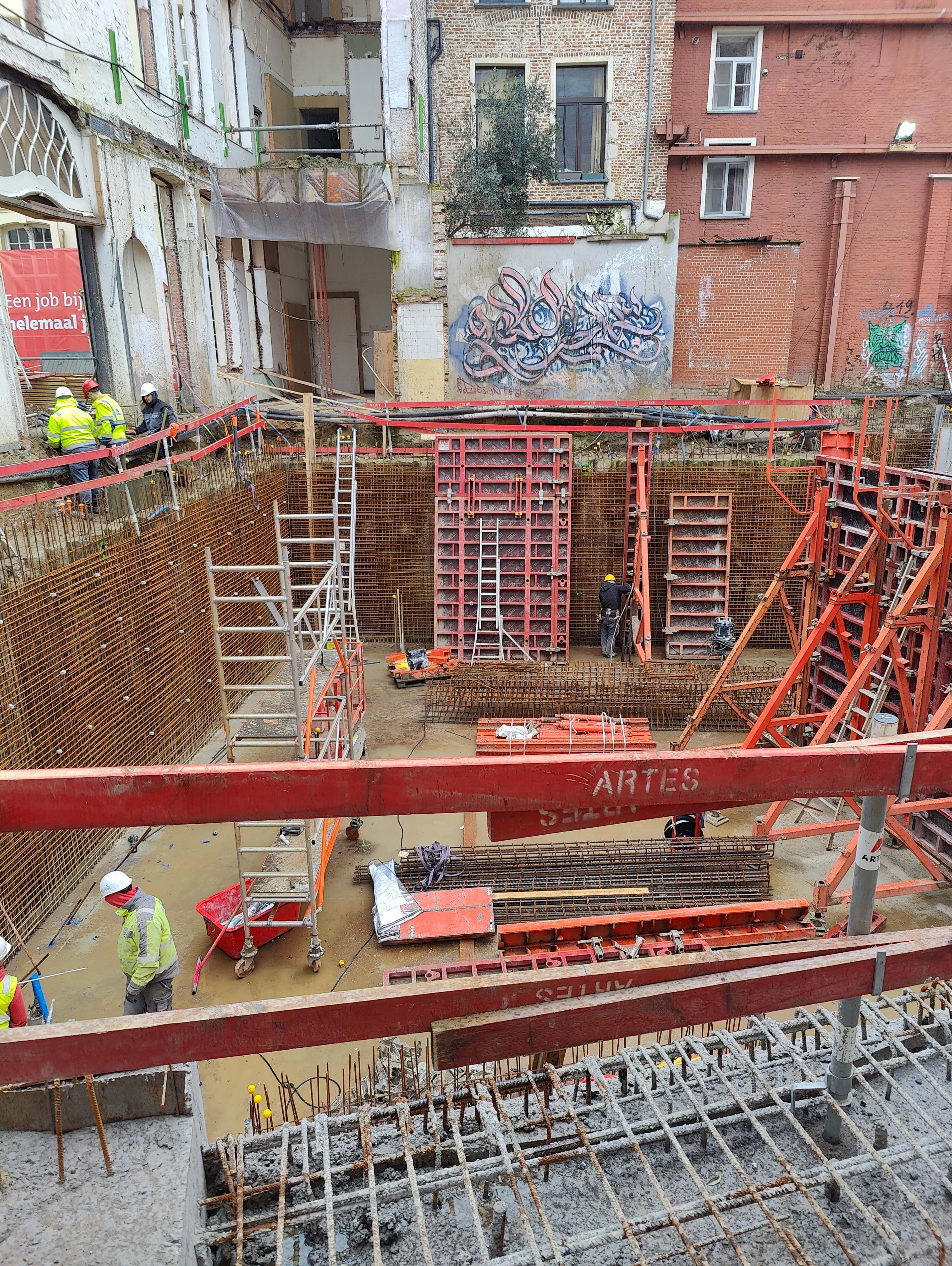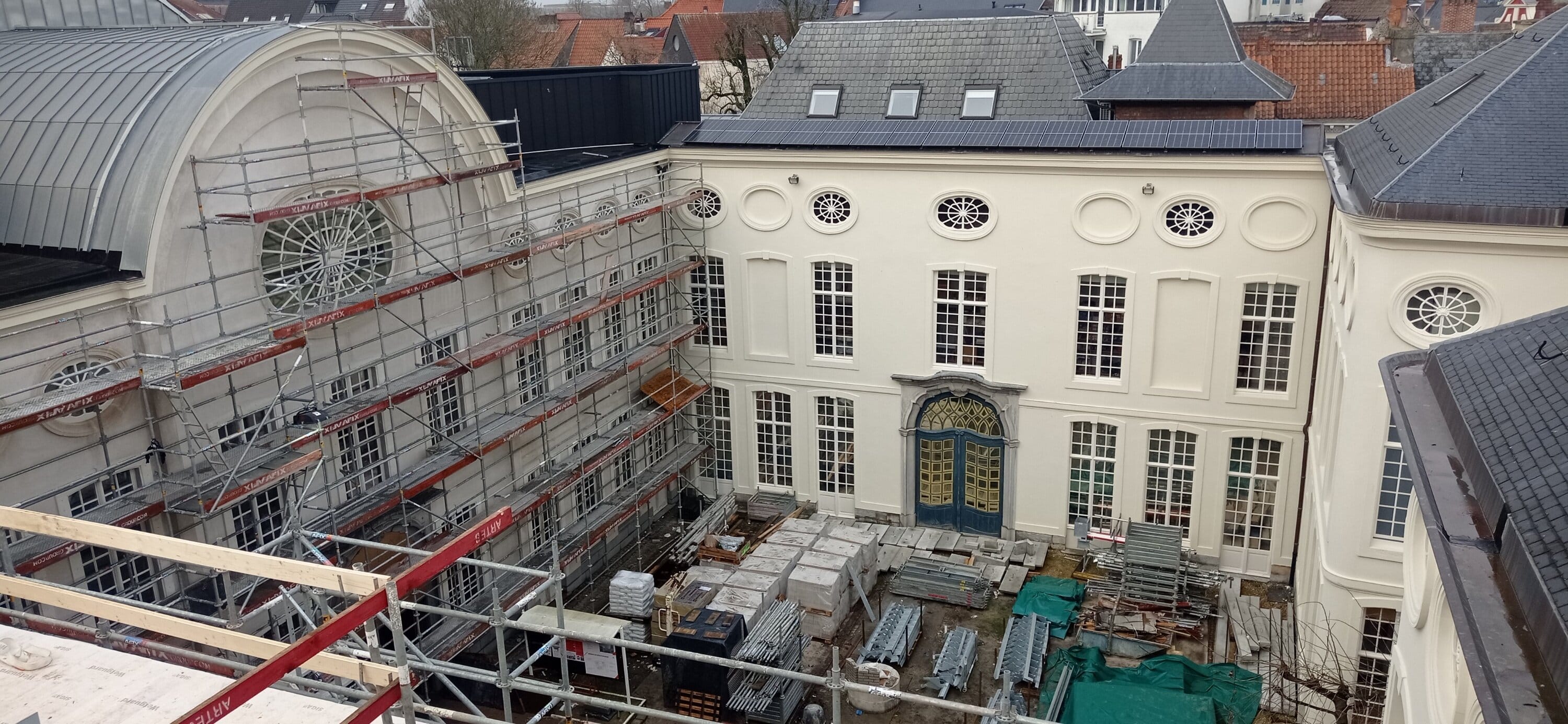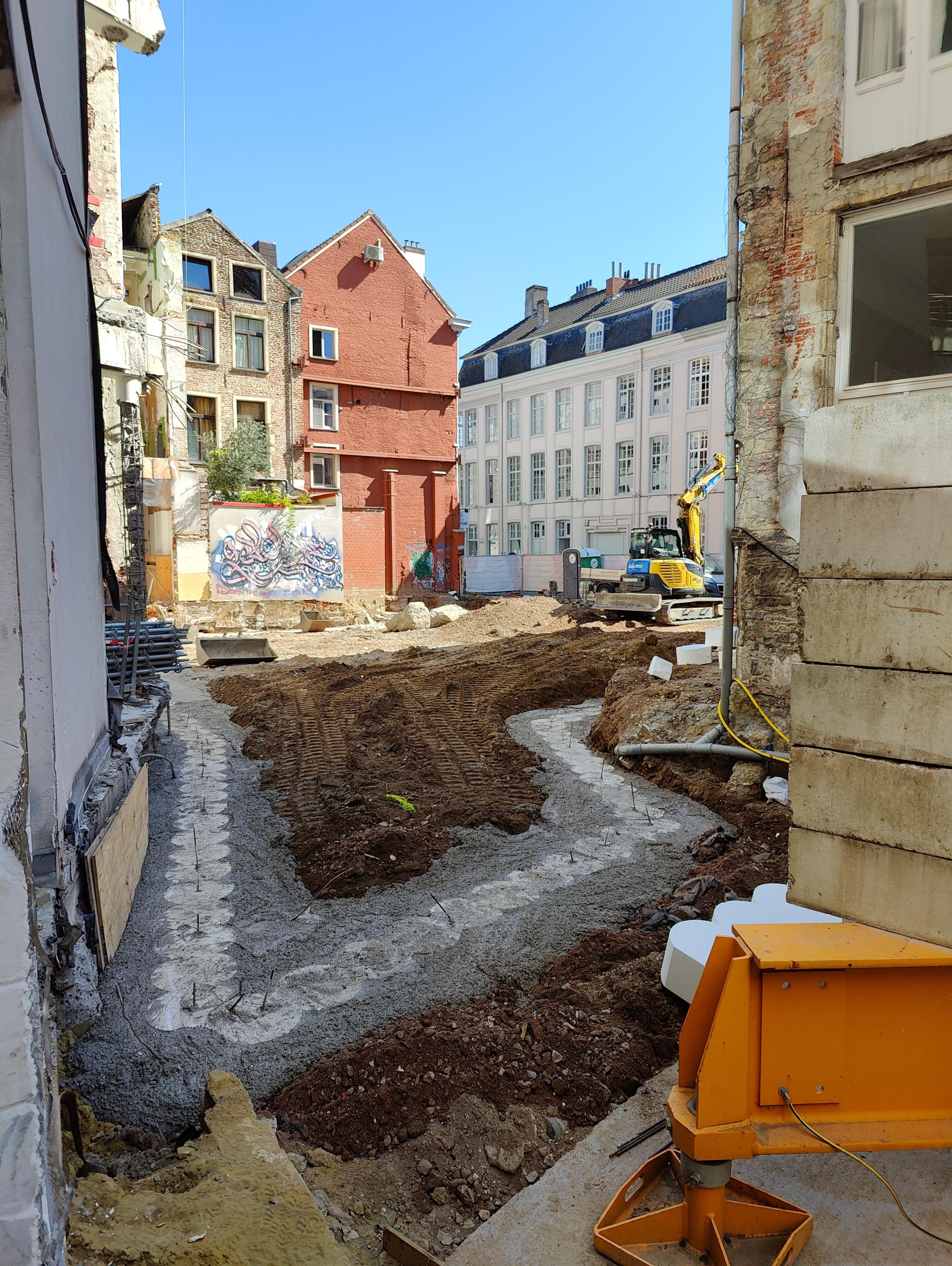 The Design Museum Ghent is extended by a new wing called DING (Design In Ghent). The new building will link the existing buildings of the museum and create additional exhibition space, while providing space for a shop and catering establishments. The structure of the new building is logical and coherent. There are large spans withstanding hight loads to accommodate several functions. The ribbed timber floors not only reduce material consumption but form also a visually interesting feature. By showing the structural elements as finishes, we simplify and accelerate the construction process significantly. The simplicity of the structure ensures that the visitor’s attention remains drawn to the exhibition. At the same time, this simplicity makes it possible to treat details with great care. Hence, the structure of the building functions simultaneously as finishing element.