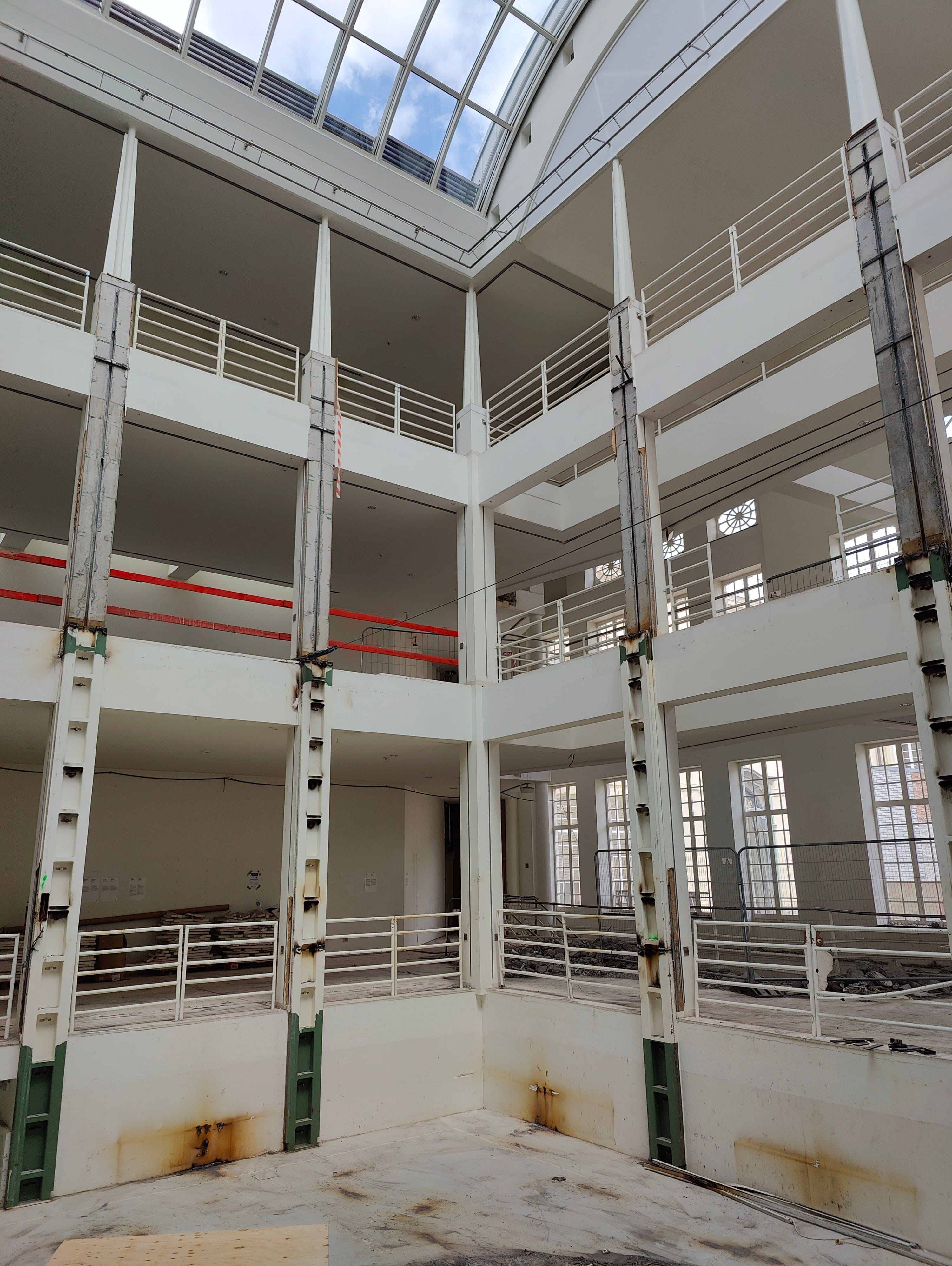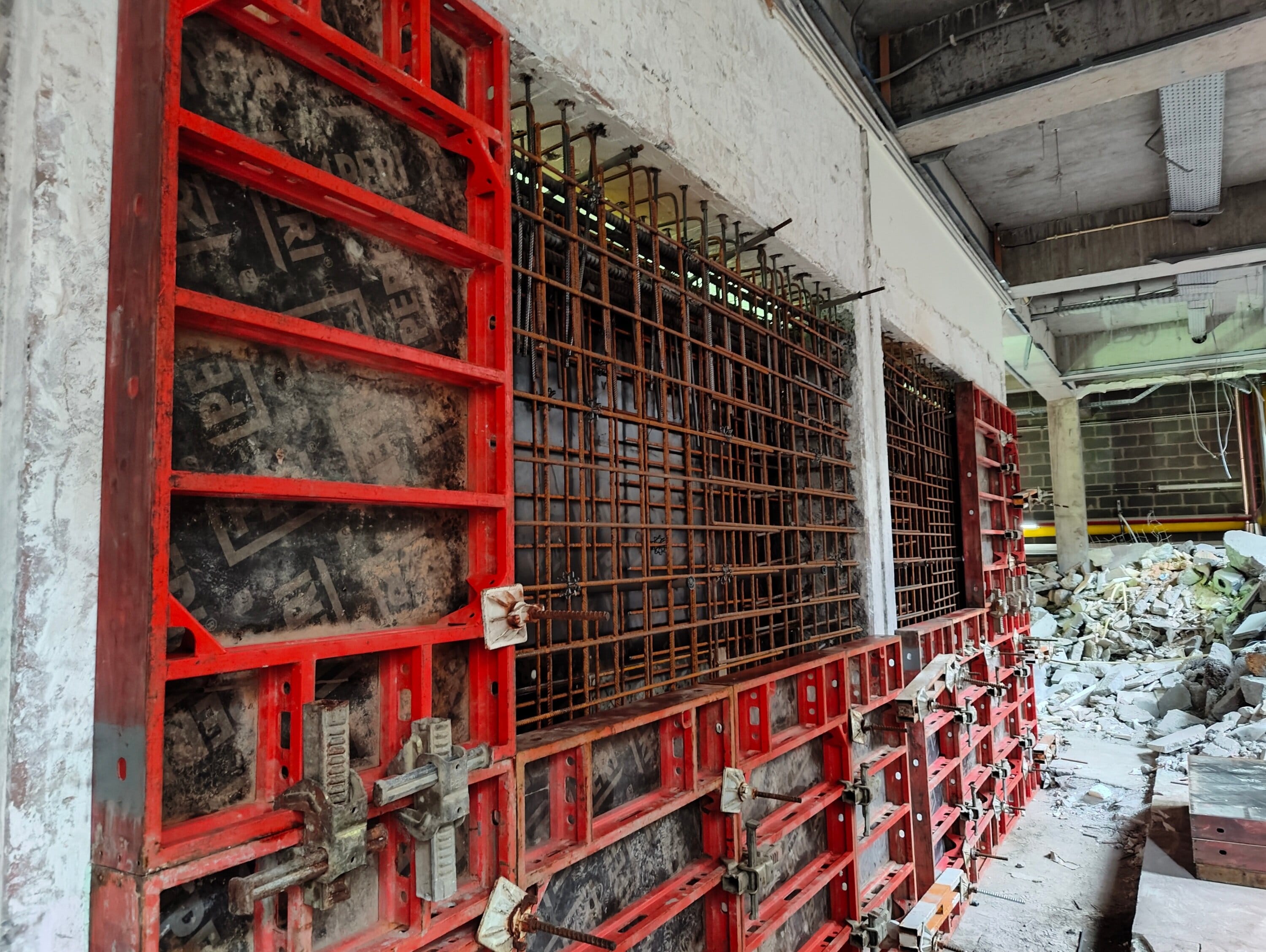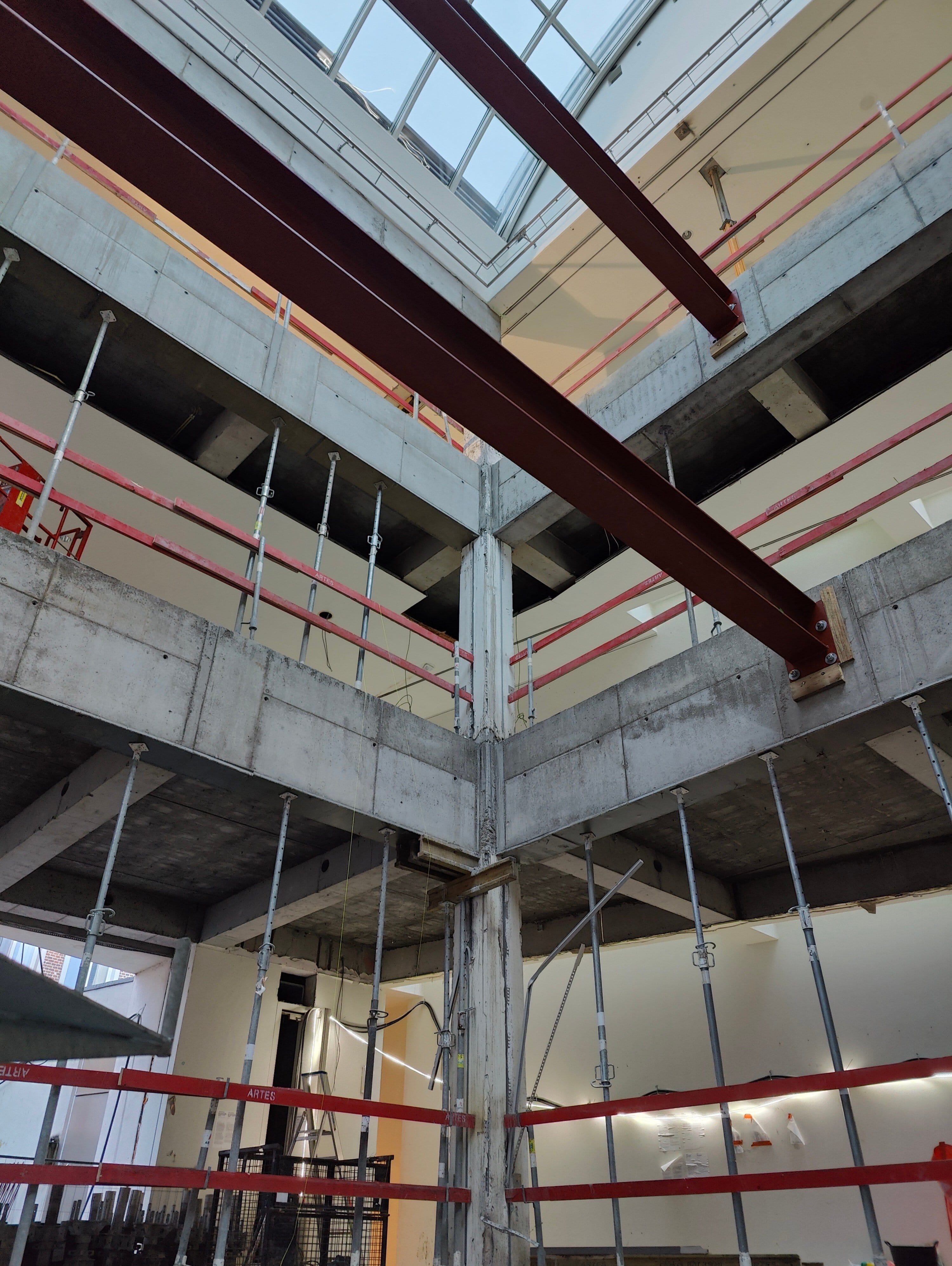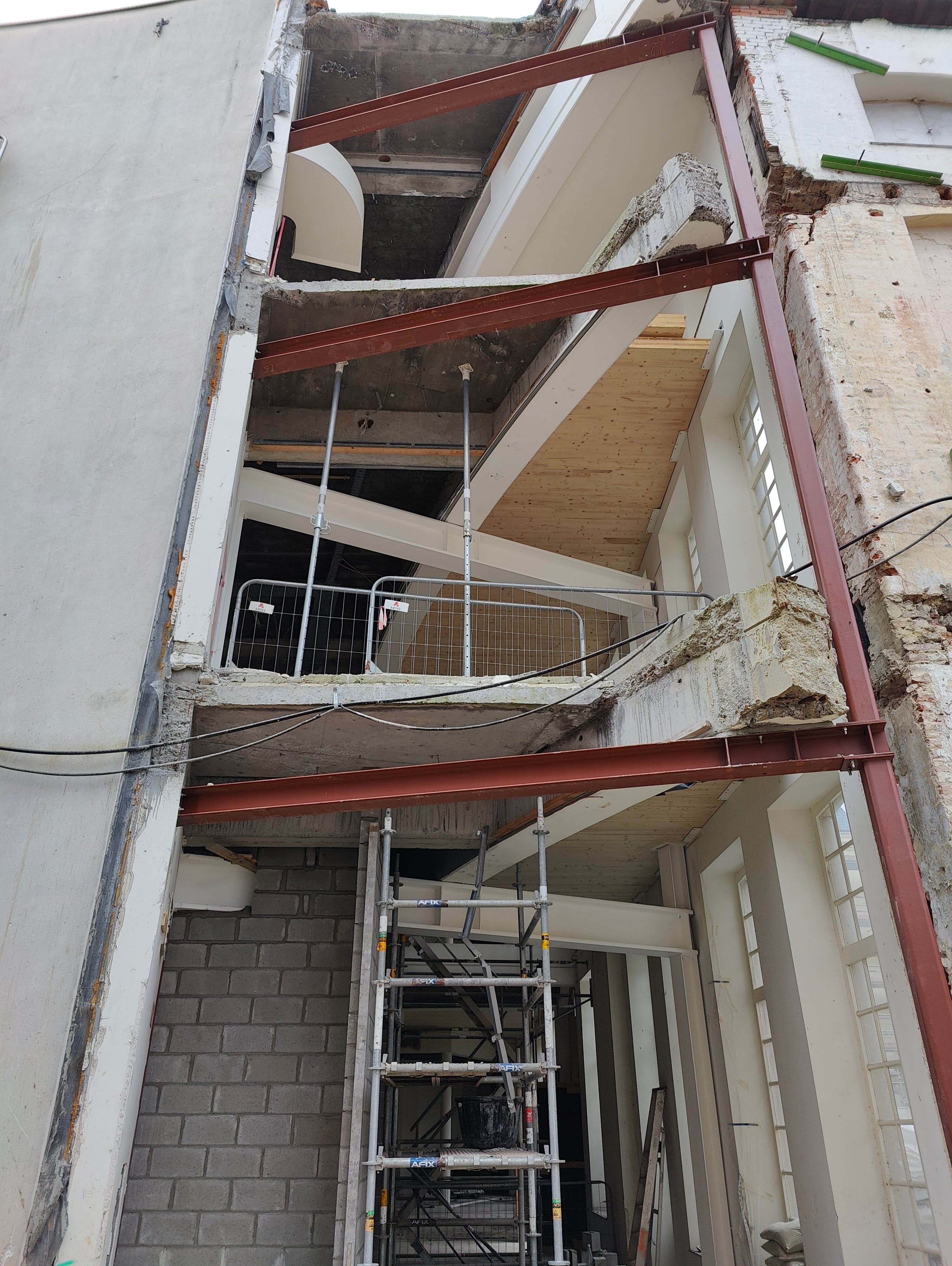 The Design Museum Ghent is extended by a new wing called DING (Design In Ghent). The new building will link the existing buildings of the museum and create additional exhibition space, while providing space for a shop and catering establishments. The structure of the new building is logical and coherent. There are large spans withstanding hight loads to accommodate several functions. The ribbed timber floors not only reduce material consumption but form also a visually interesting feature. By showing the structural elements as finishes, we simplify and accelerate the construction process significantly. The simplicity of the structure ensures that the visitor’s attention remains drawn to the exhibition. At the same time, this simplicity makes it possible to treat details with great care. Hence, the structure of the building functions simultaneously as finishing element.