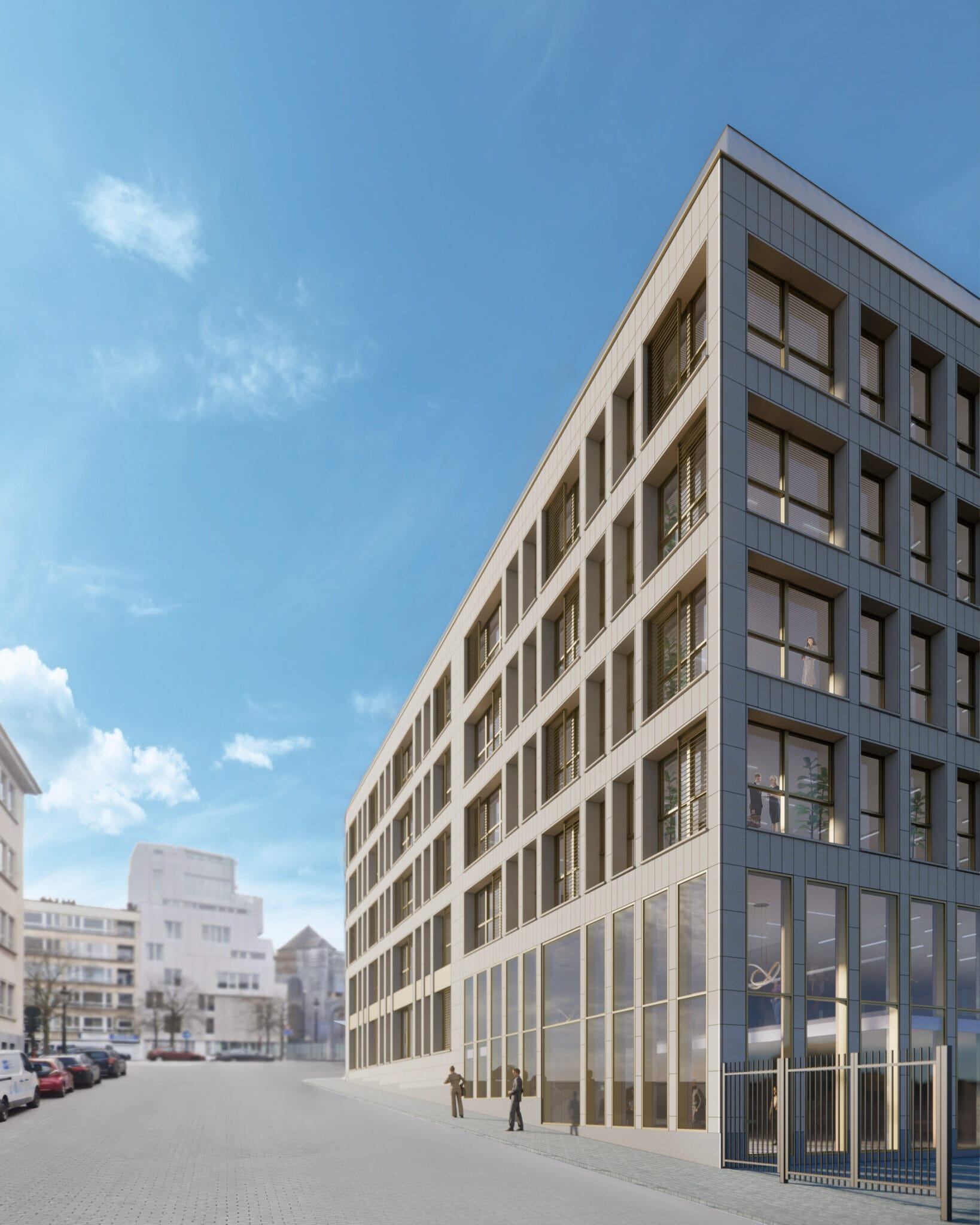 The project involves the heavy renovation of the building located at 11, Boulevard de l’Empereur in Brussels, currently occupied by VDAB offices. The renovation aims to transform this mid-20th century structure into high-quality spaces with large office floors, while incorporating a new central core with stairs and elevators. This project is particularly complex because part of the building rests on the north-south train junction of Infrabel. The current total surface area of the building is 7,500 m², and after renovation, it will reach 10,000 m², thanks to an extension at the back of the building and an elevation with a timber structure.