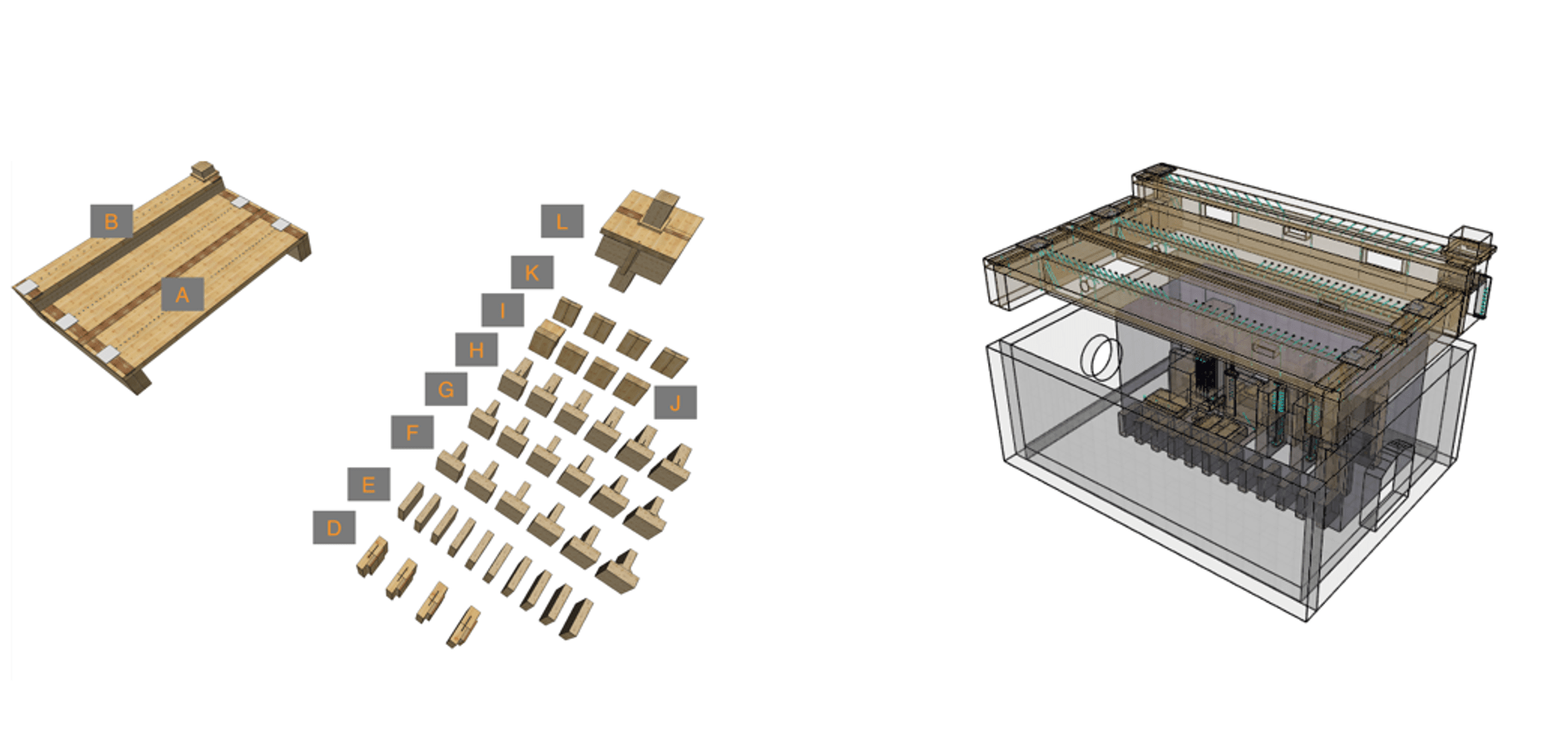 Concerning the timber structure, an advanced study for fire stability has been performed for this project in collaboration with the University of Liège. Indeed, we were asked to demonstrate that the structure could withstand a longer period of time than originally planned while maintaining the same sections.