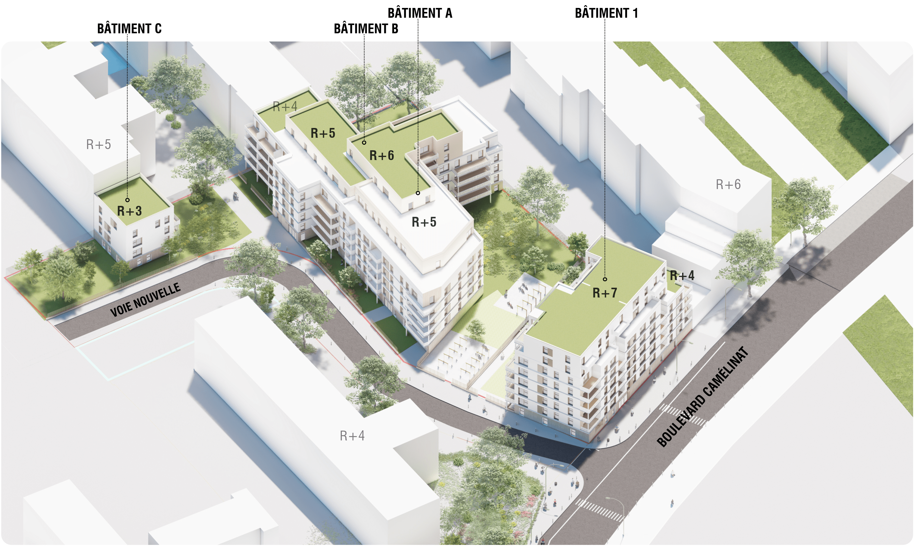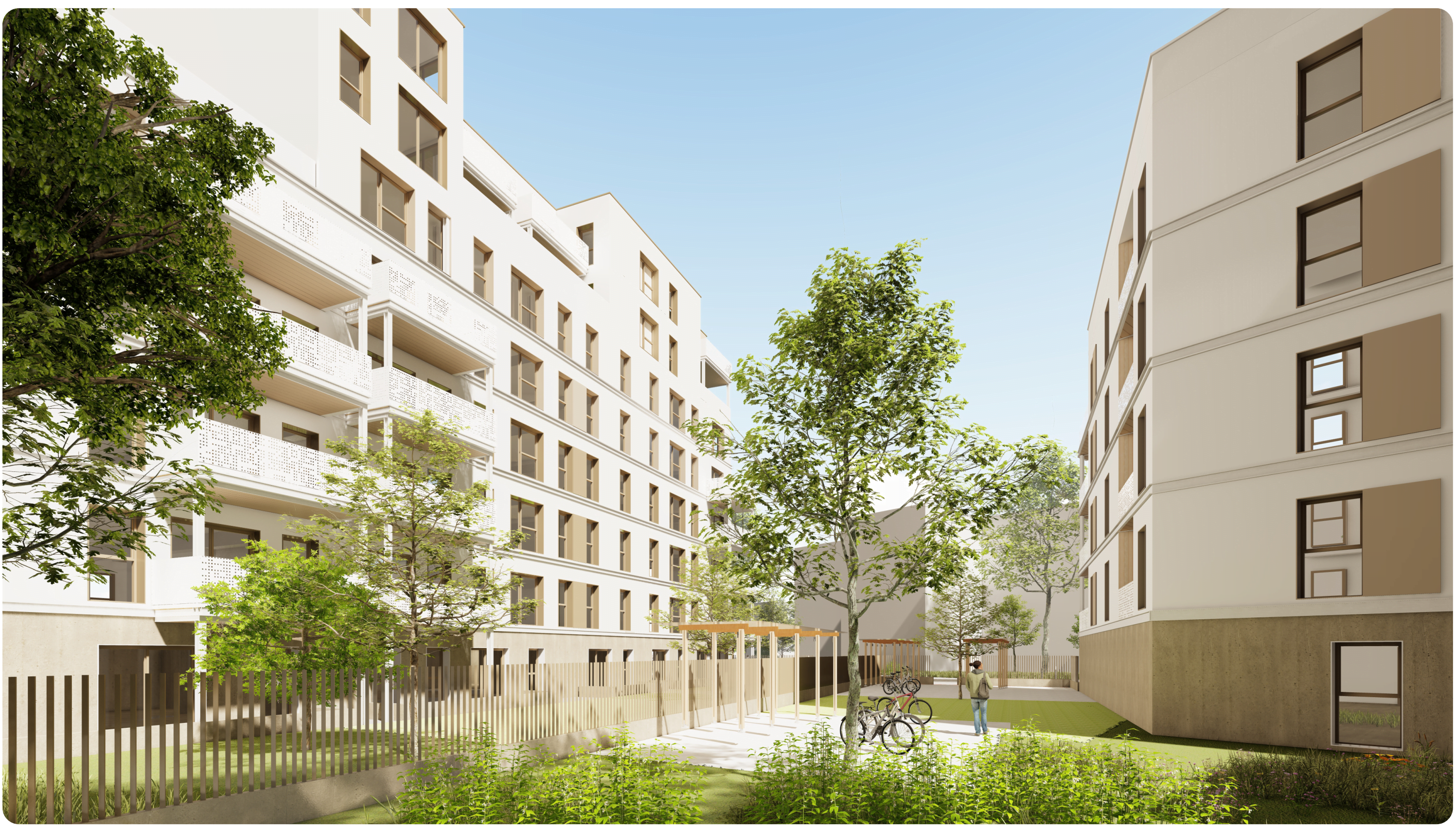 Located in the Parisian district of Gennevilliers, a complex of four residential buildings is currently under study, occupying a total floor area of 8,500 square meters and offering 120 residential units.