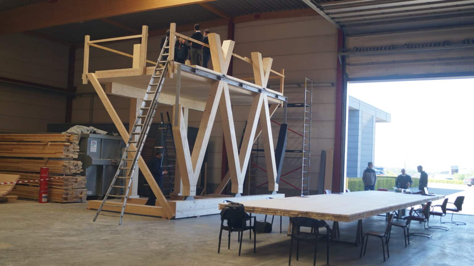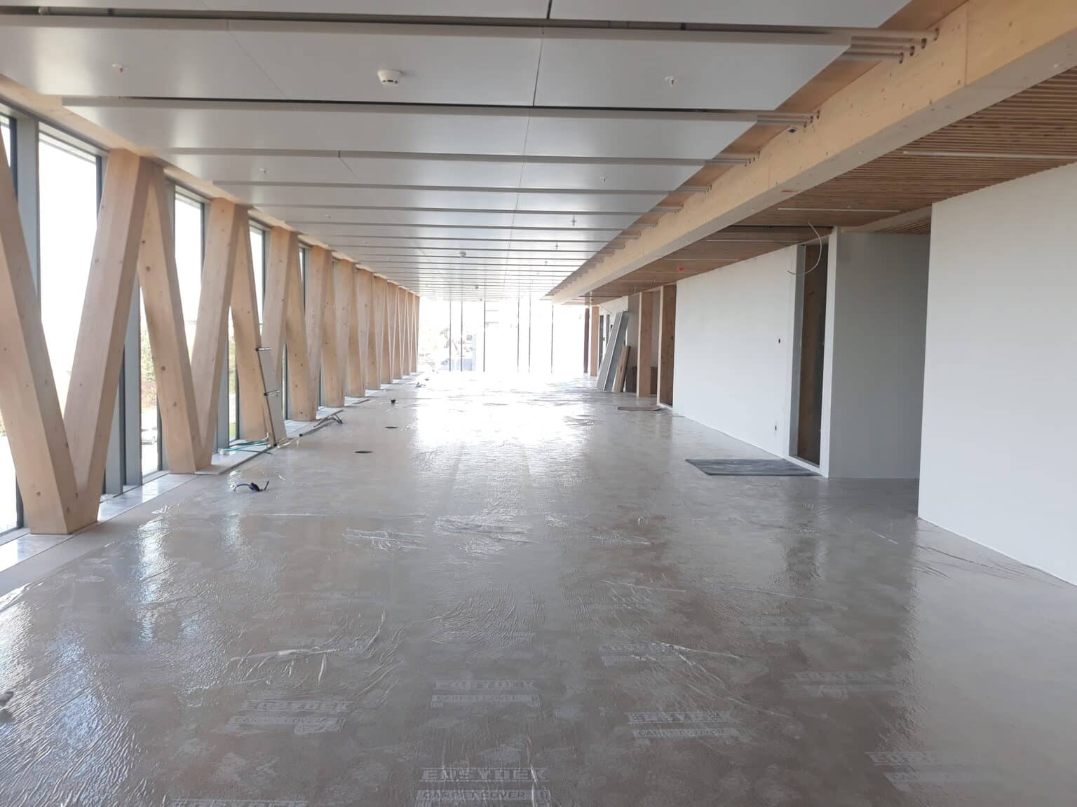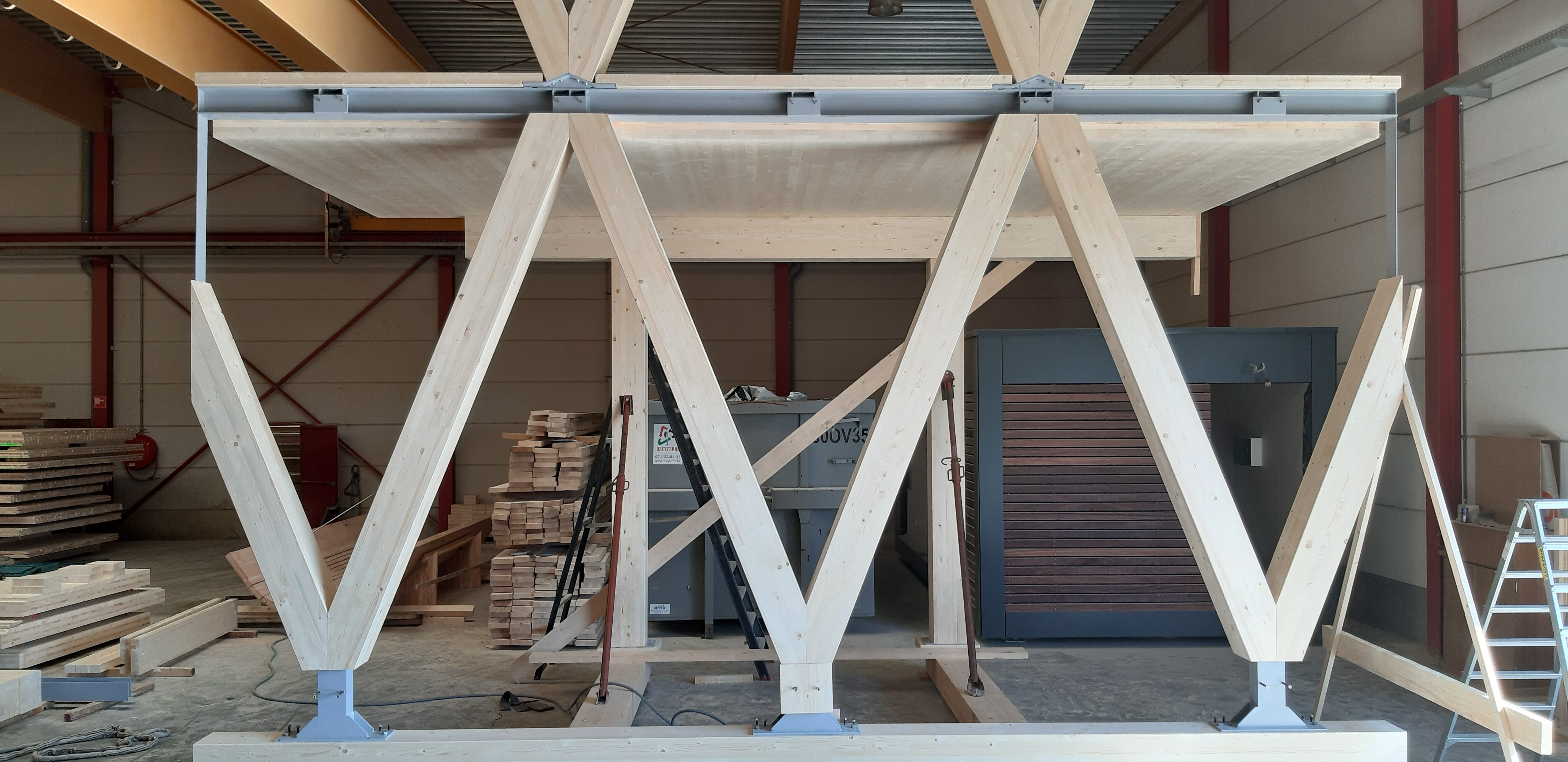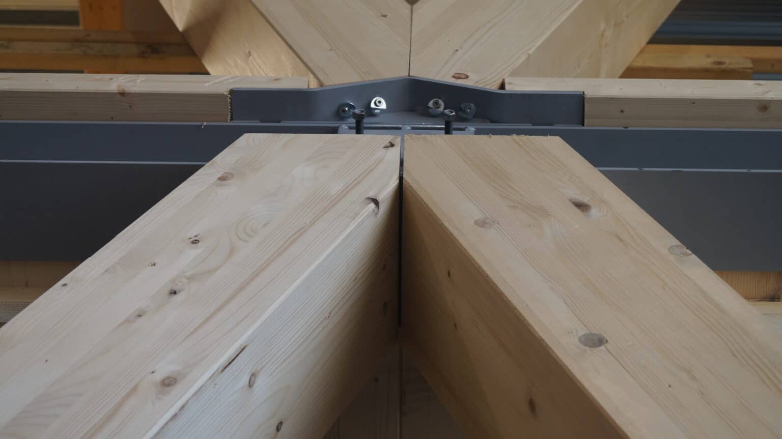 The basement level houses three levels of parking. The entire basement is made of cast-in-place concrete, providing a solid foundation for the building. Moving upward from the ground floor, a beam-column structure made of glued laminated timber (glulam) was installed. This engineered wood material offers excellent structural integrity while maintaining a natural and aesthetically appearance. The CLT floors, with a maximum span of 6.85 meters, provide ample office space. The “V” shape of the timber facades not only gives the building its distinctive character but also serves as the primary bracing system. To speed up the construction schedule, prefabrication techniques were used wherever possible, reducing site work and minimising construction time.