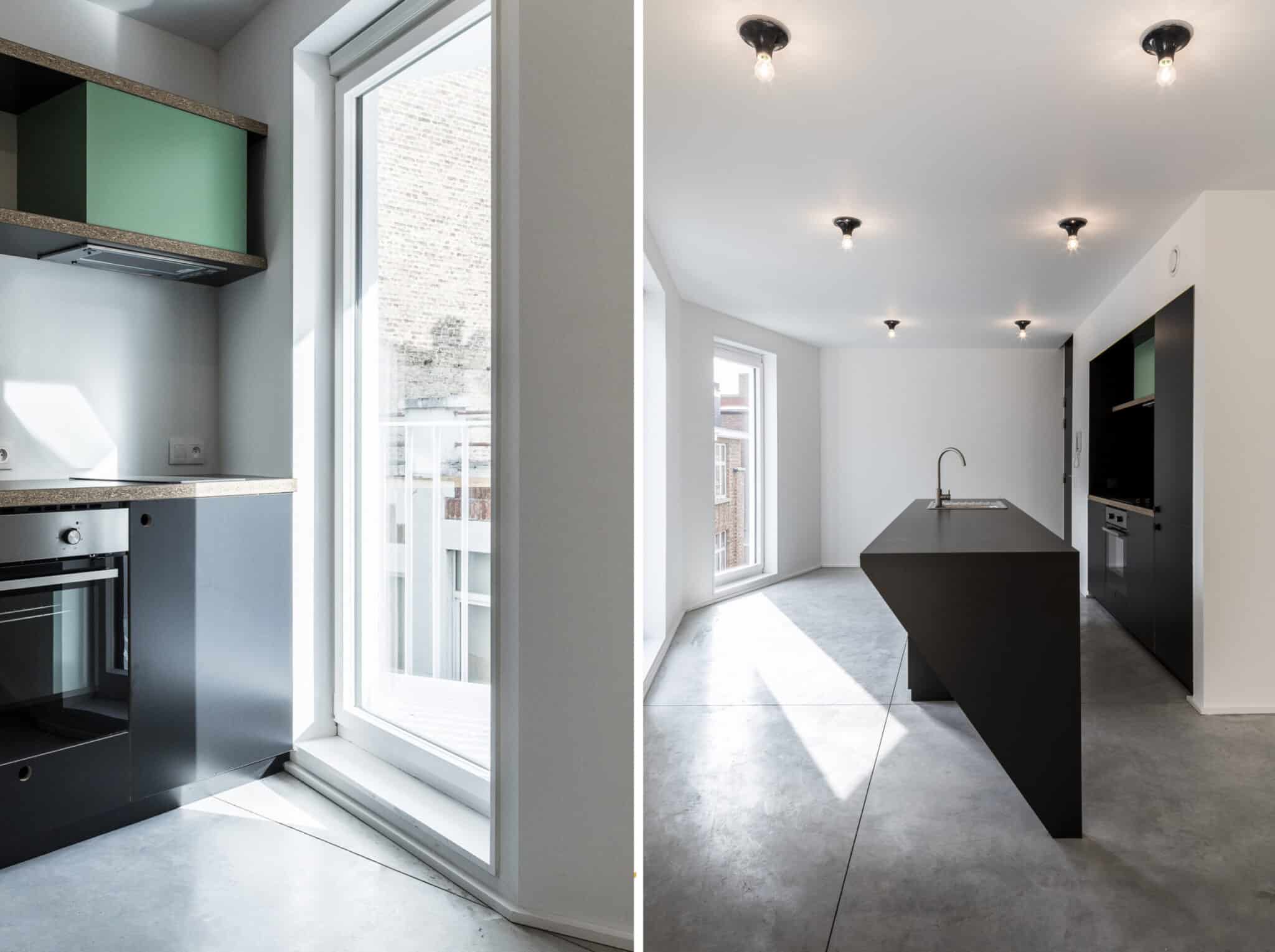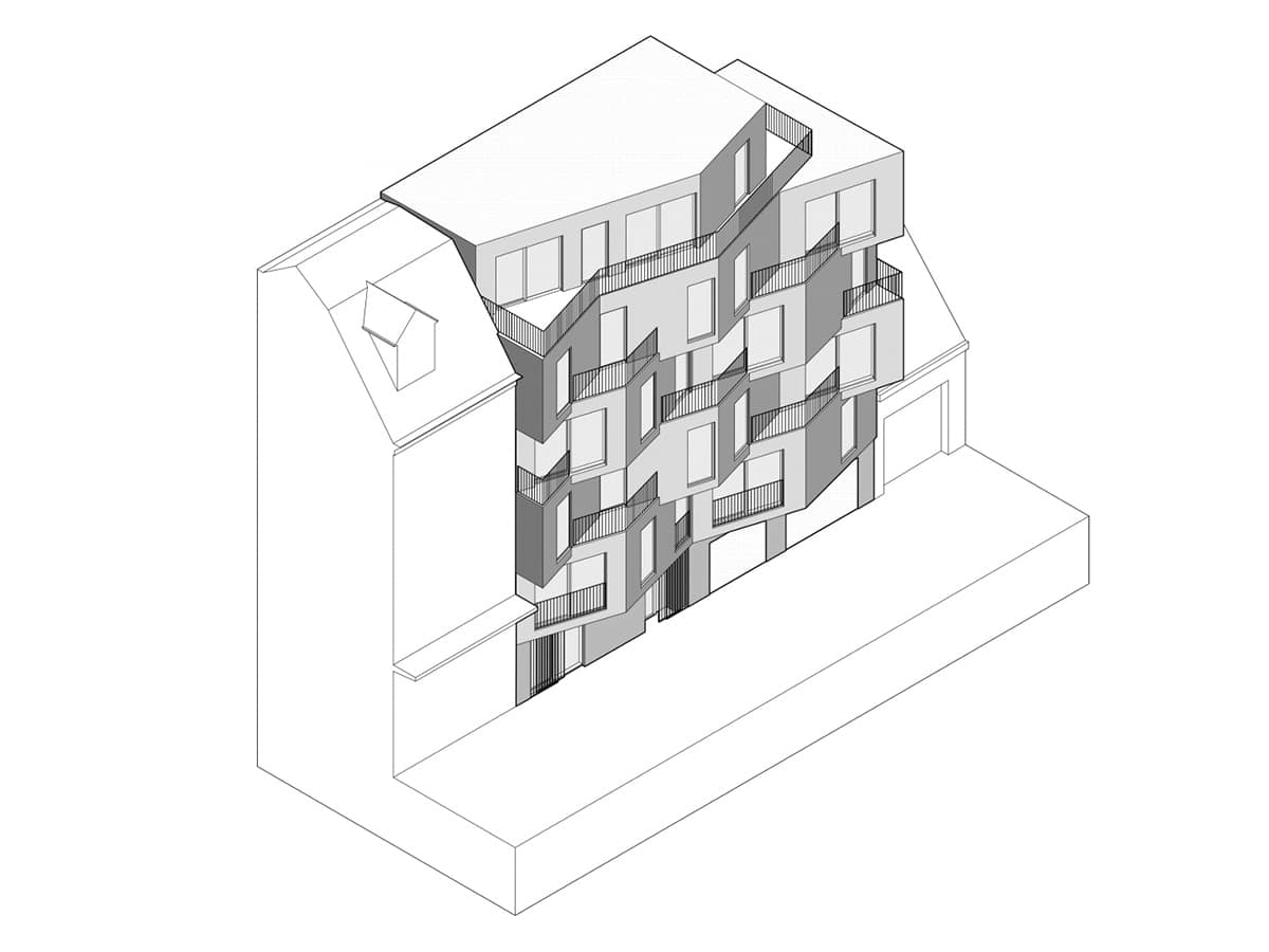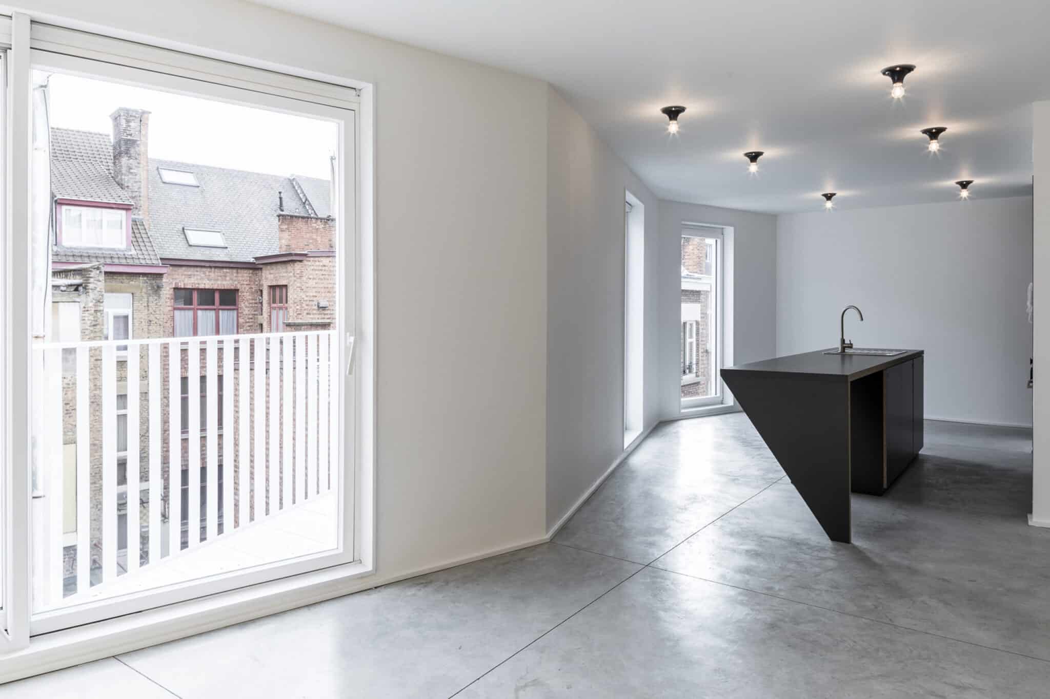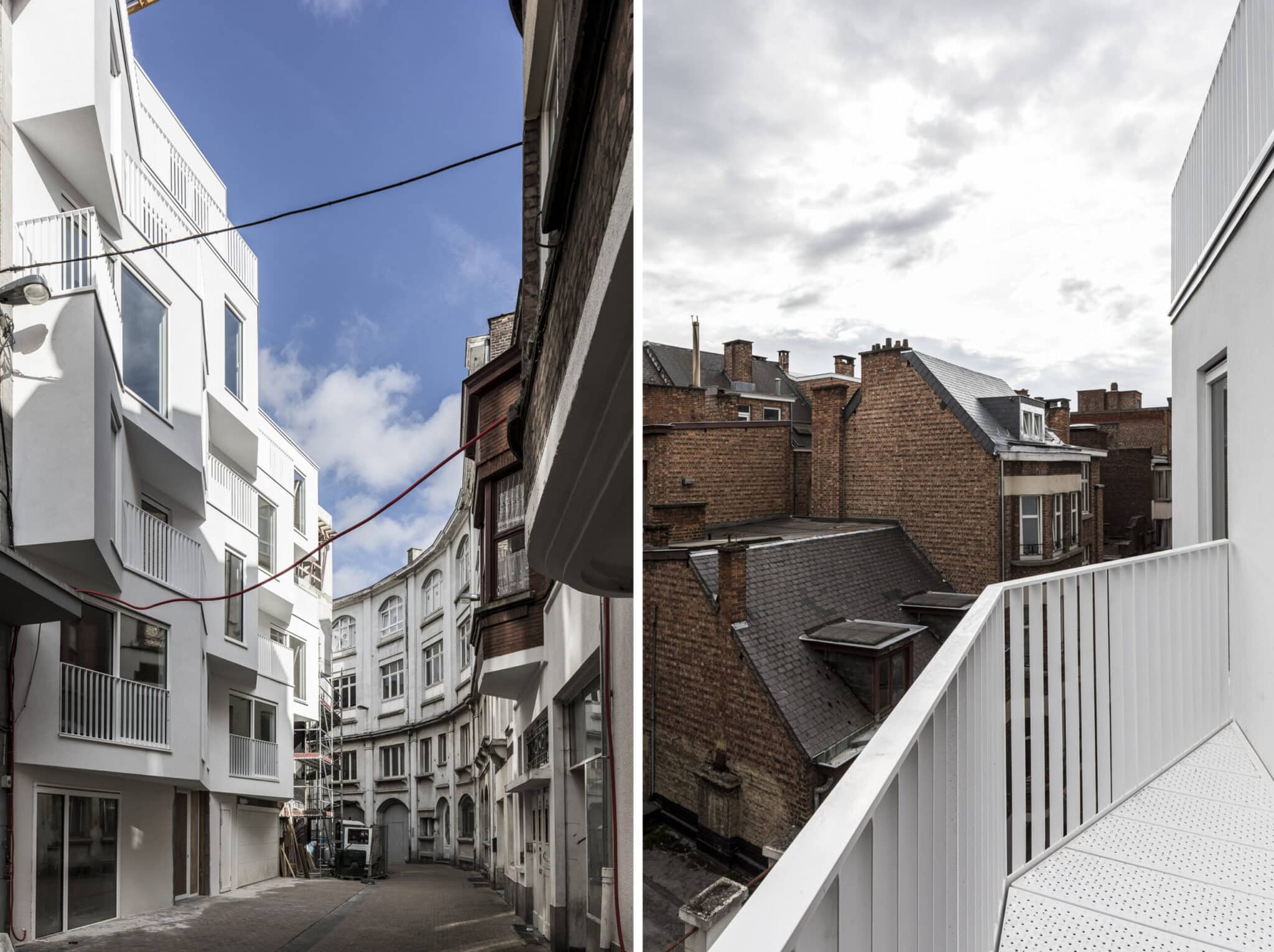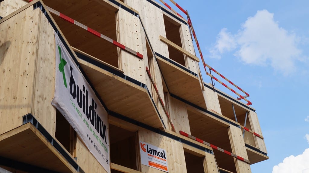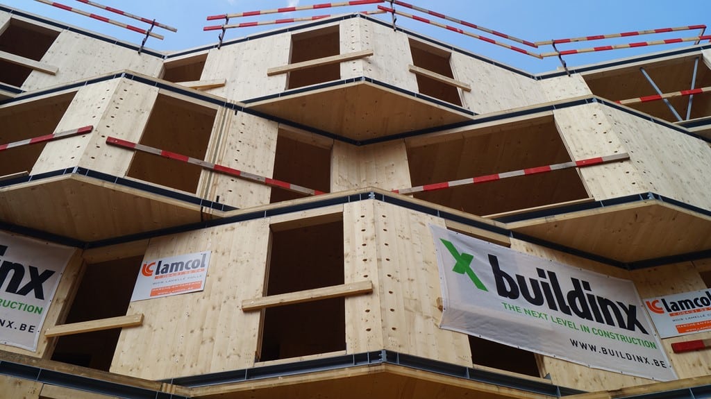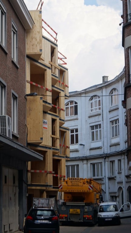 Six level apartment complex in the center of Namur constructed with massive cross laminated timber panels.