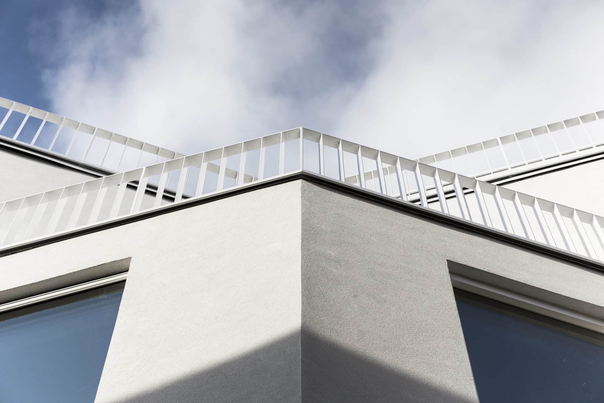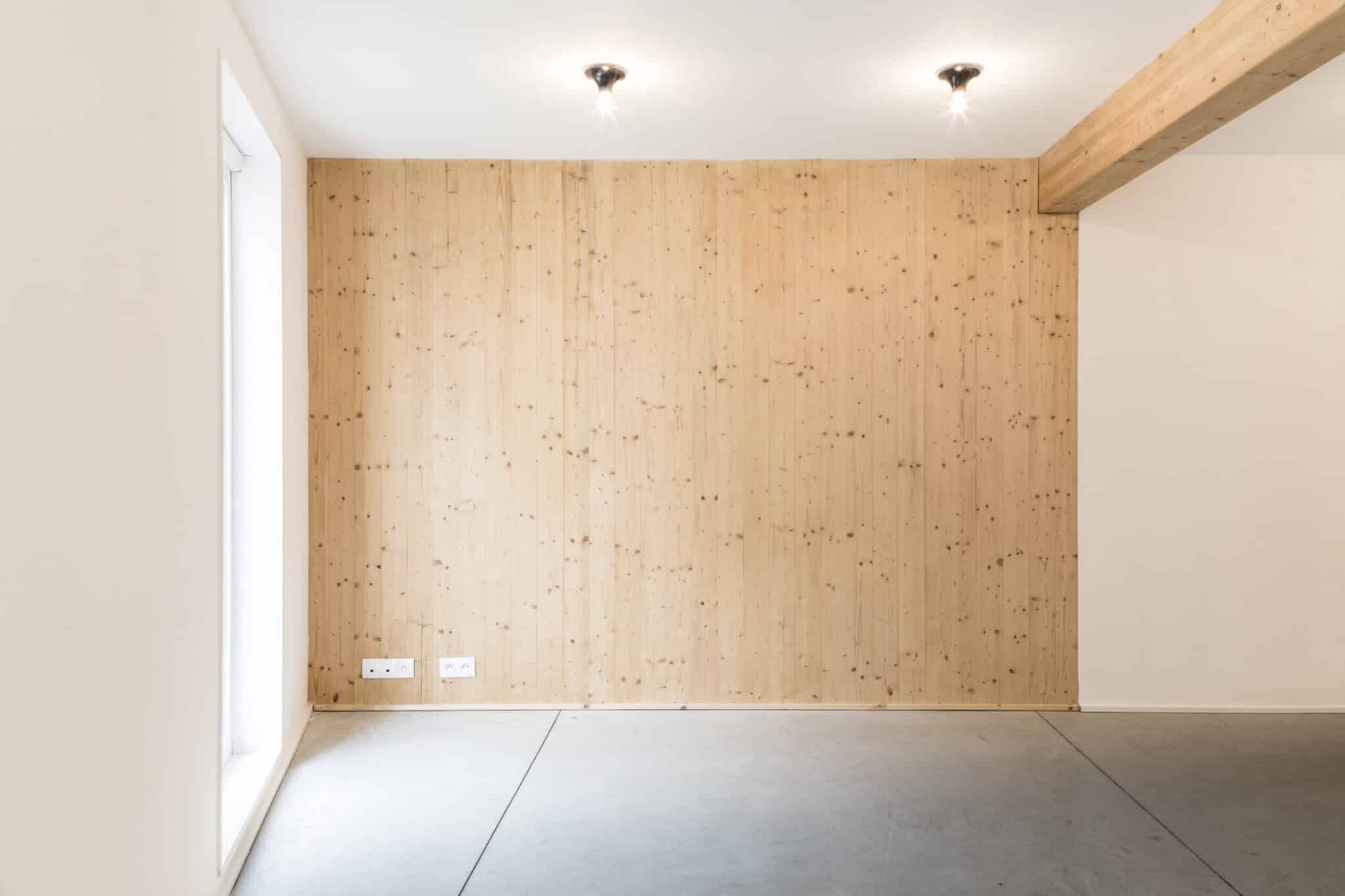 Supported on a reinforced concrete basement structure, this six level building is largely constructed with CLT panels (Cross Laminated Timber). he folded front façade is cantilevered and the plates that make up the façade are self-supporting and carry the weight of the floors. This was made possible by designing them as “Vierendeel Girders” that combine CLT and steel. For acoustic reasons the building envelope is of double wall construction. The solid wood panels were chosen because of their appearance, speed and ease of erection, reduced loads on the foundations and the optimization of space. Most notably the slender floor construction allowed 6 levels where traditional building methods would have resulted in only 5.