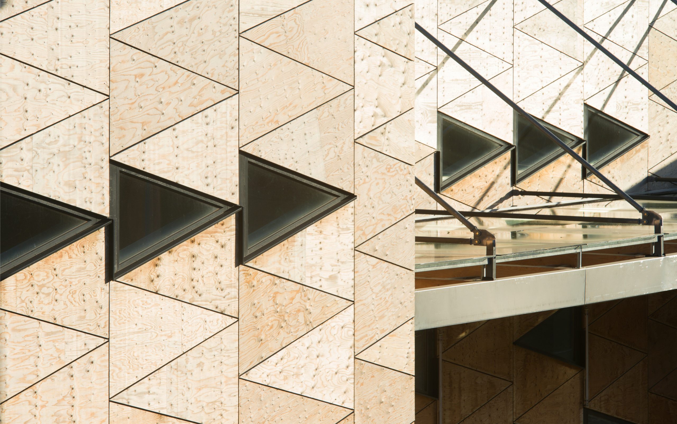 One of the key first tasks was to undertake a precise wind study in order to define the strict minimum design loads. This allowed the identification of zones subject to different load intensities and consequently the optimization of the frameworks in relation to their situation and form. The framing members in BLC Duo (GLULAM) were ultimately chosen for reasons of cost and strength and customized connections were developed in order to ensure sufficient clearance over the main structure whilst guaranteeing horizontal restraint to the façade elements. The structure of the roof lights will be in LVL.