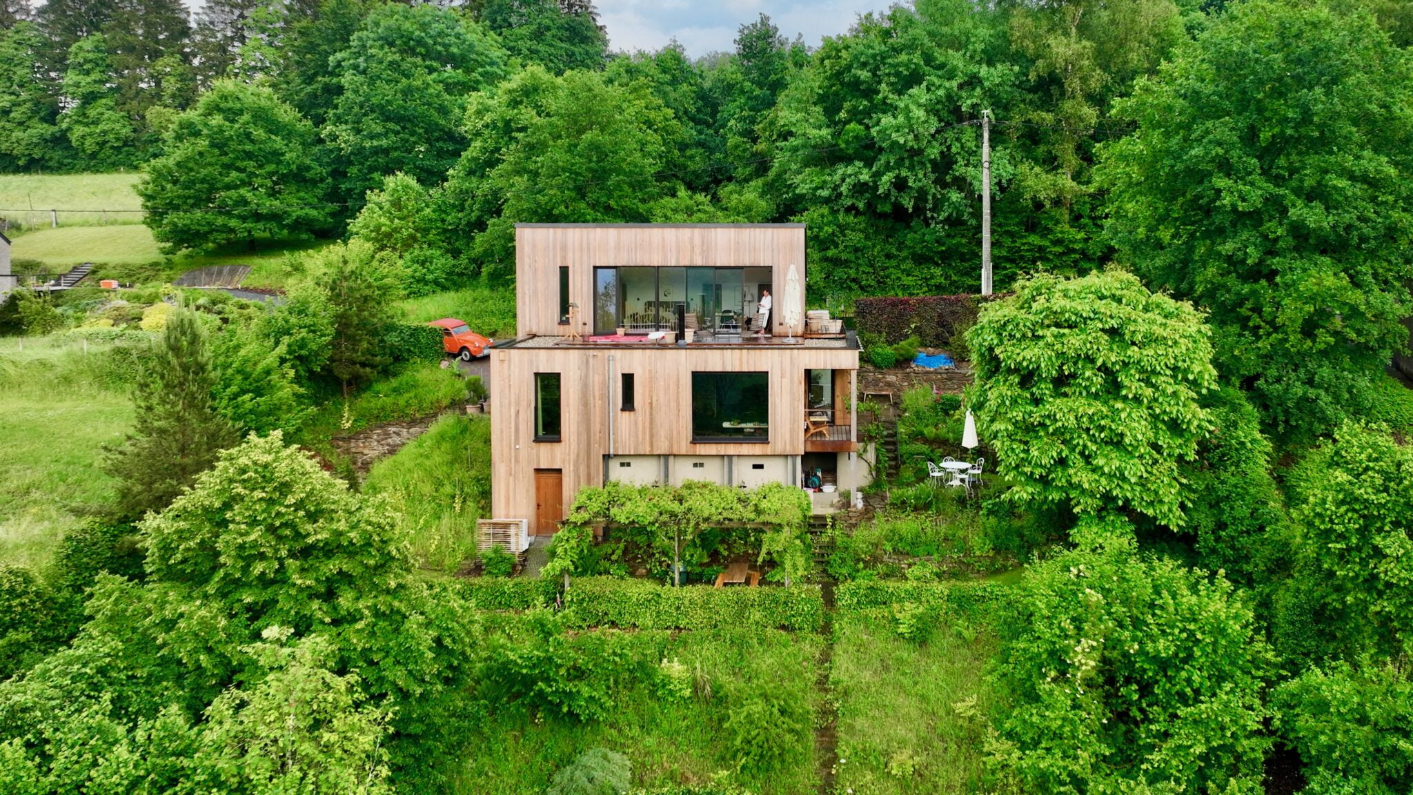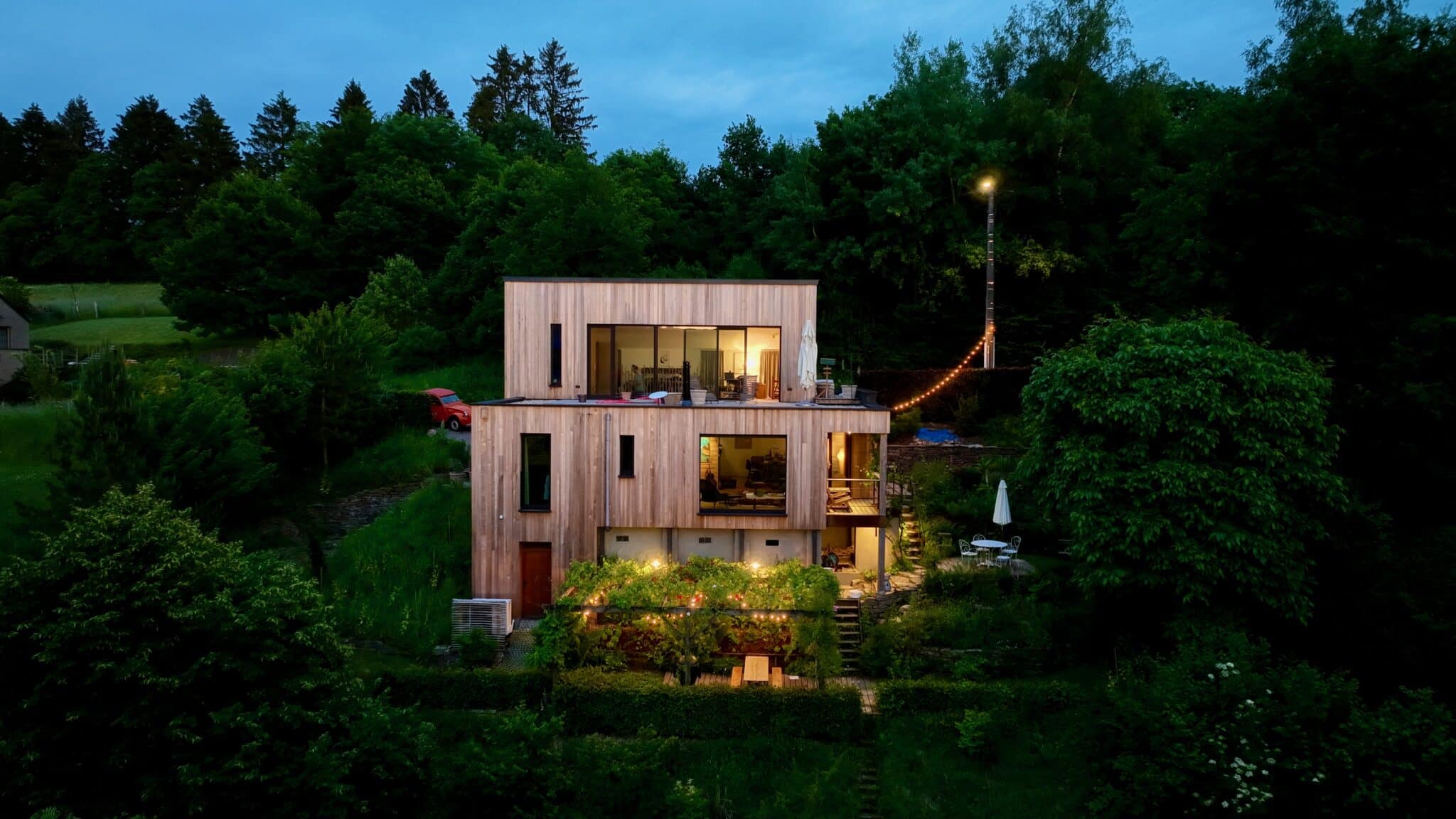 A steel and glued laminated timber structure was designed to support the additional floor without transferring loads to the existing building. This was especially important since the clients wanted a partially planted and therefore very heavy roof deck.