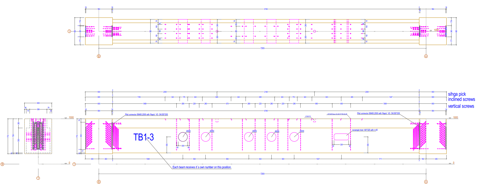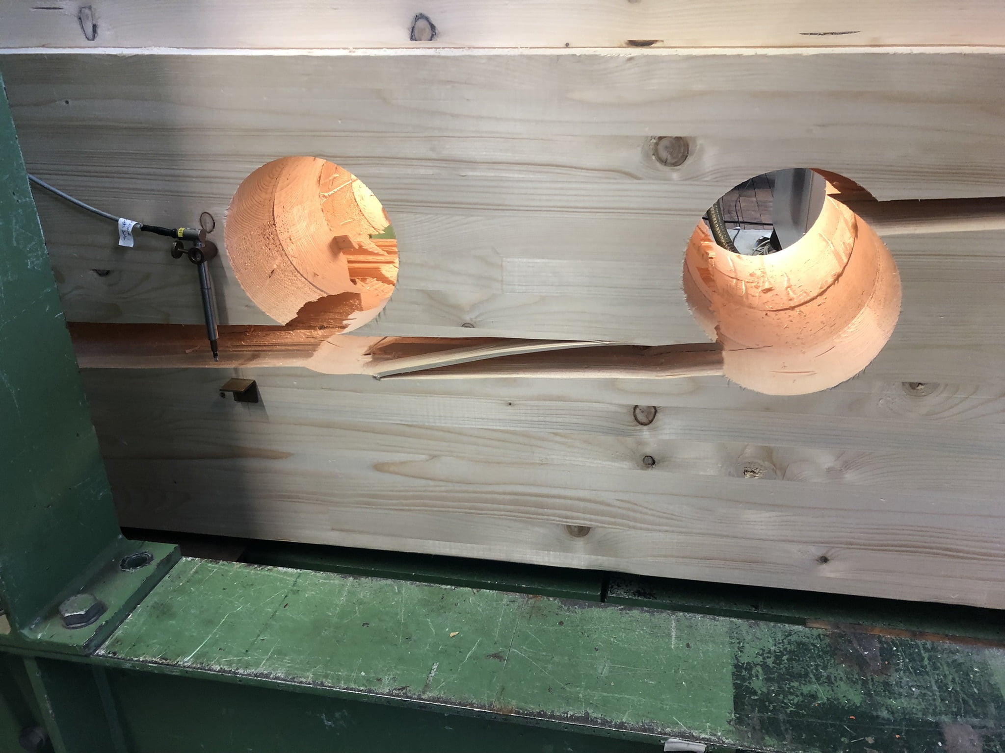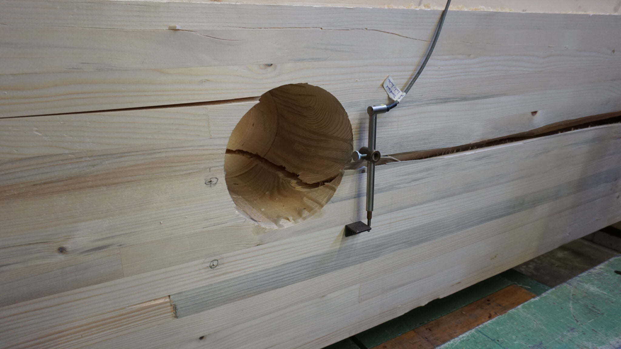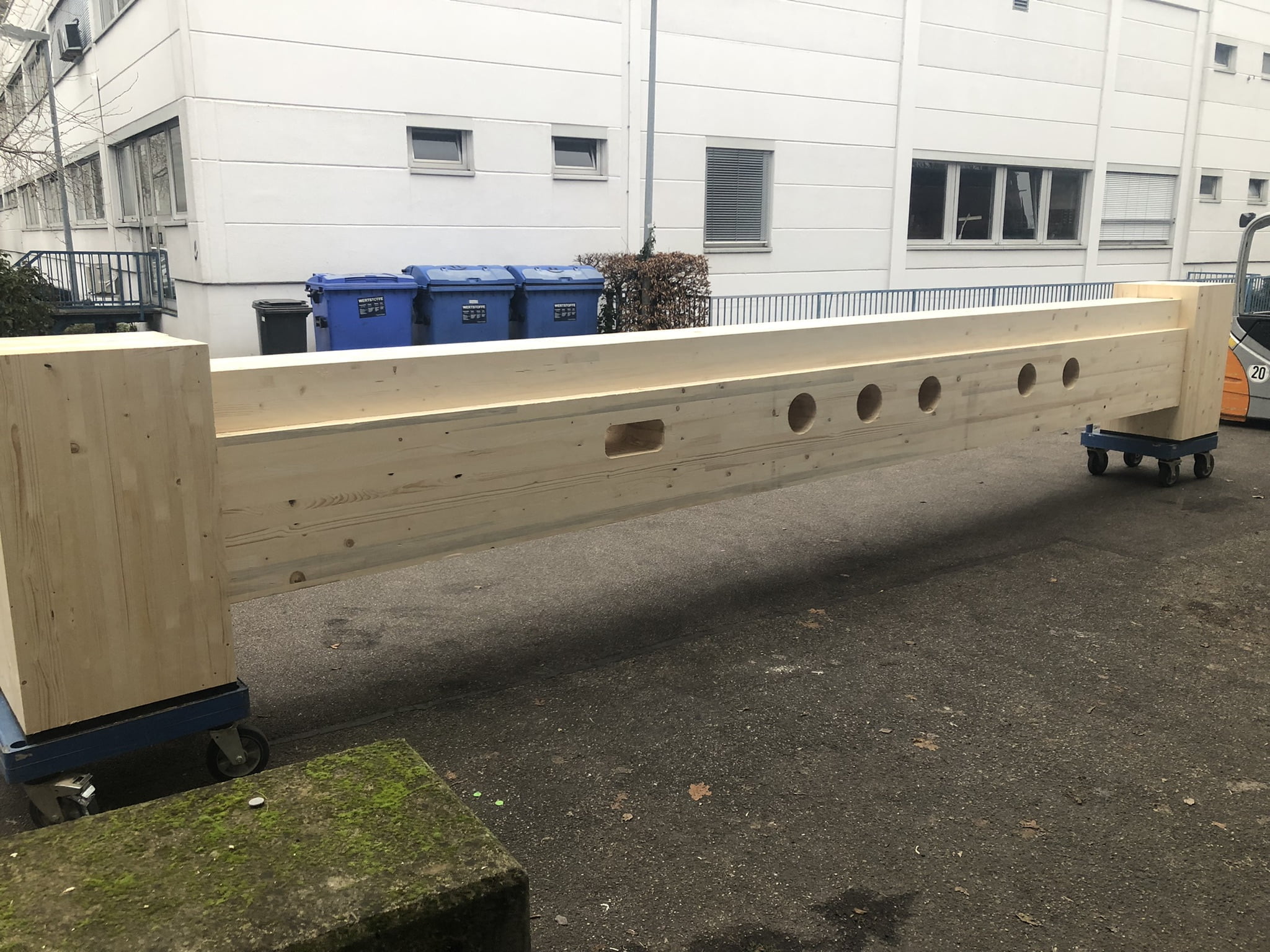 The research, carried out in collaboration with the Karlsruhe Institute of Technology (KIT) and Prof. Philipp Dietsch, aimed to verify the strength of 52x75h cm block glued glulam beams containing openings.