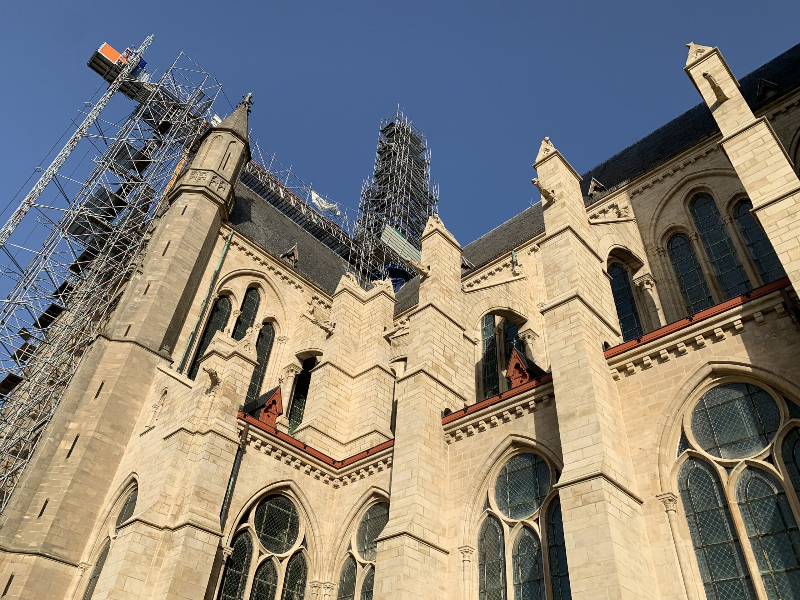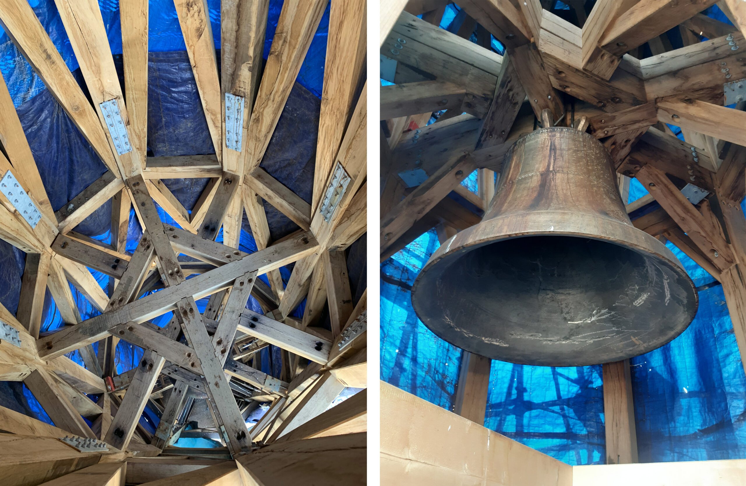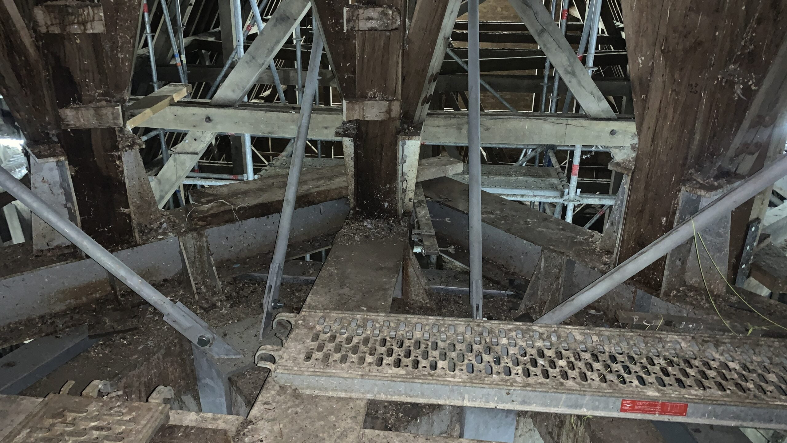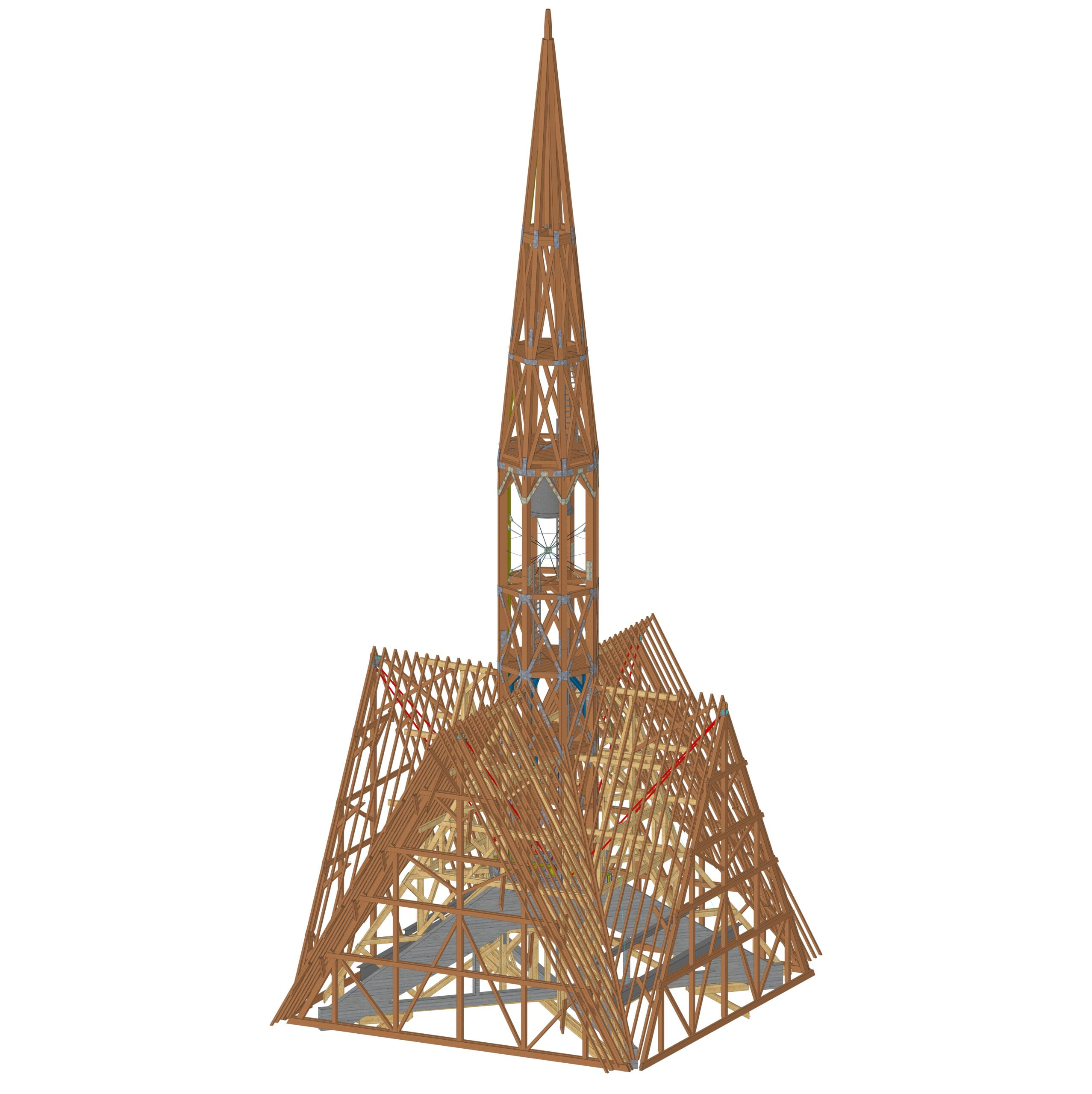 Our mission focuses on a comprehensive study of the spire’s support and integration into the existing timber structure. Meticulous attention was being paid to the intricate connections between the spire and the longitudinal beams of the roof to enhance lateral bracing. As the church frame was not sufficiently rigid to stabilize the spire horizontally, a set of tie rods was added in a second stage to transfer the forces directly to the masonry.