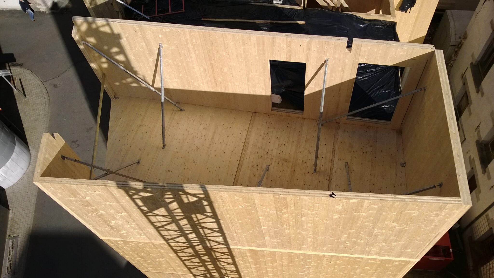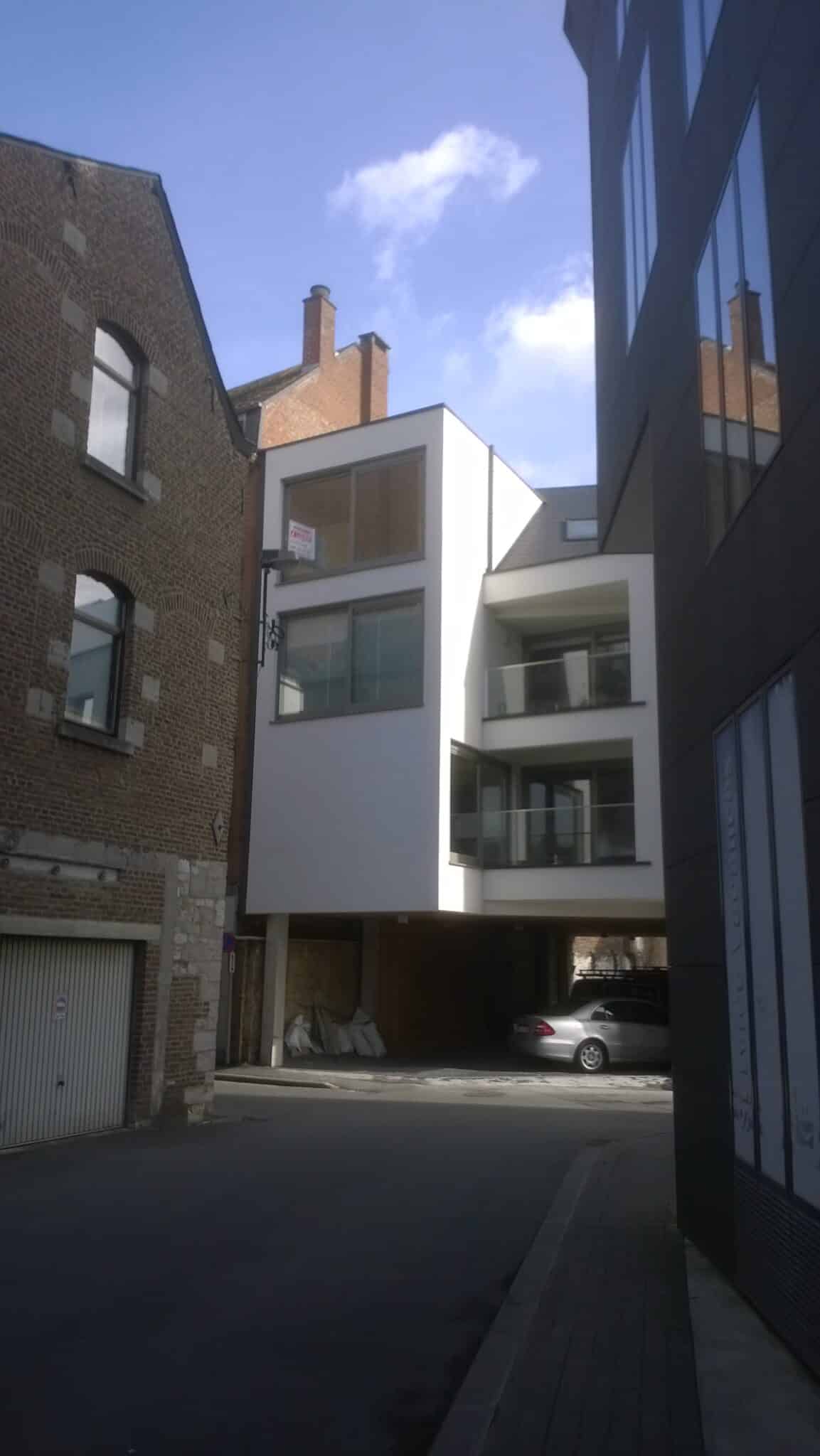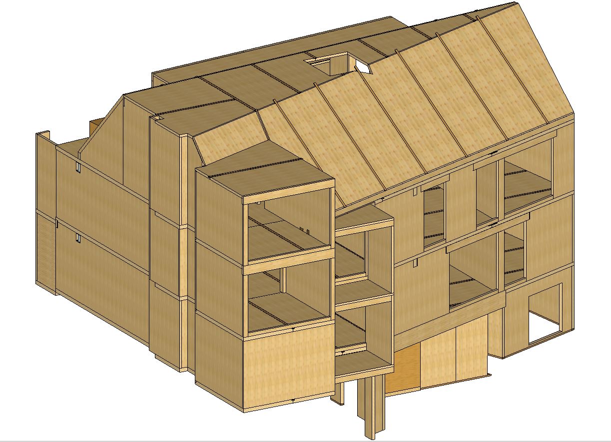 Housing building project in the center of Namur. Building in solid CLT back-glue panels.