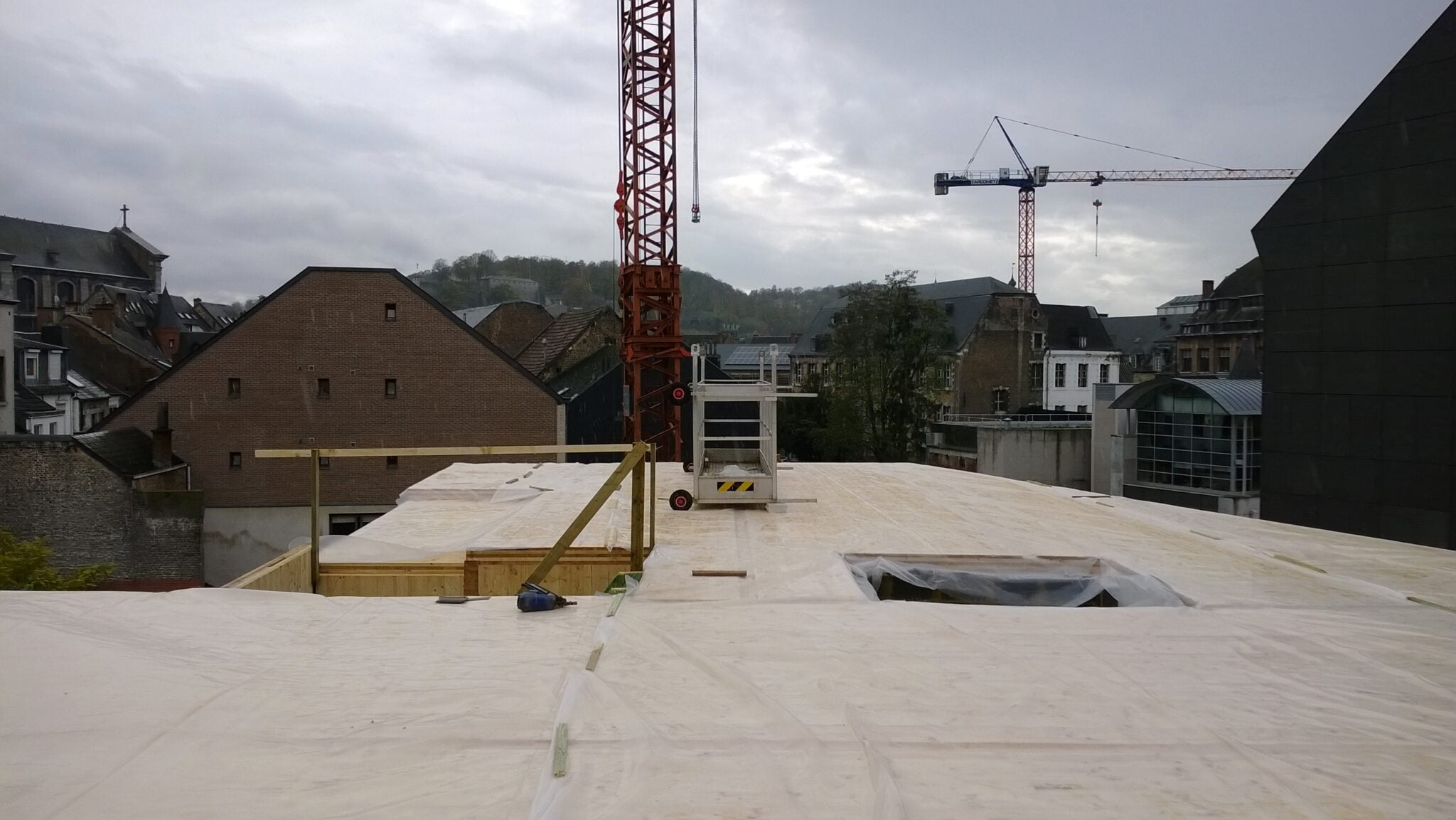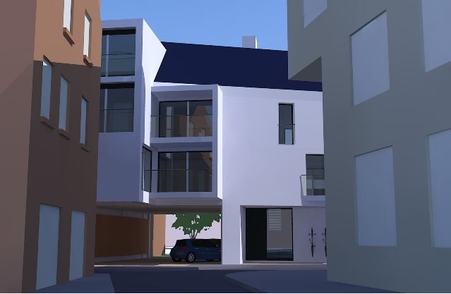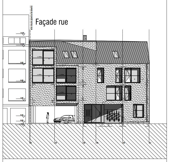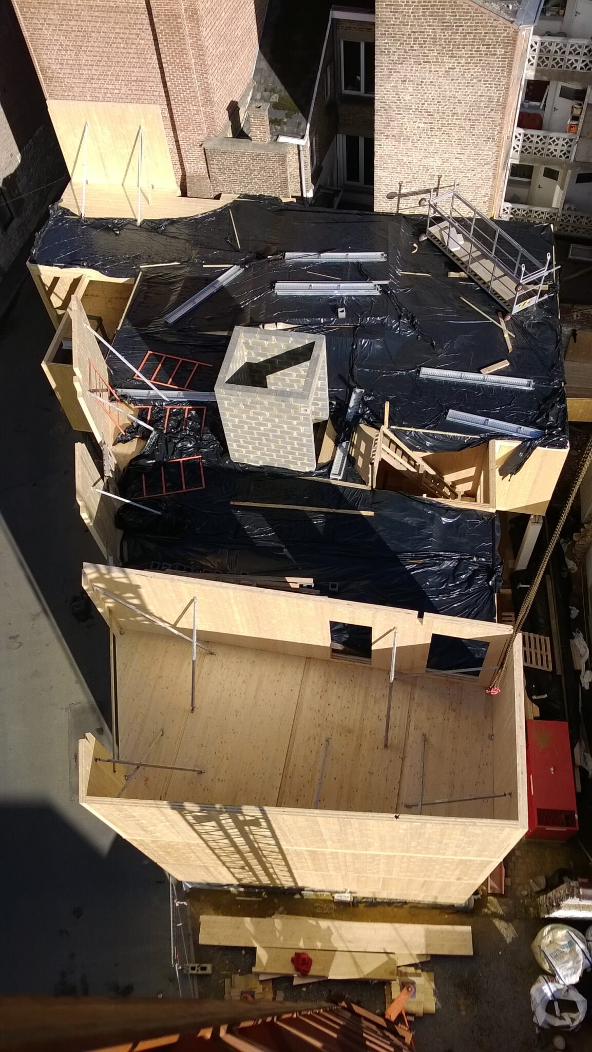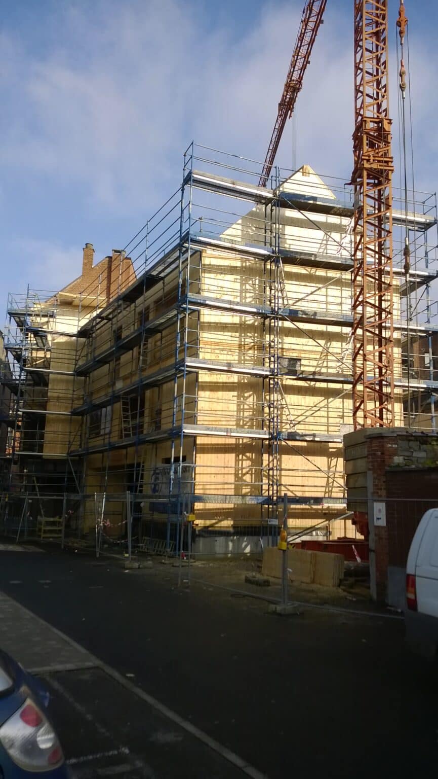 Housing building project in the center of Namur. Building in solid CLT back-glue panels.